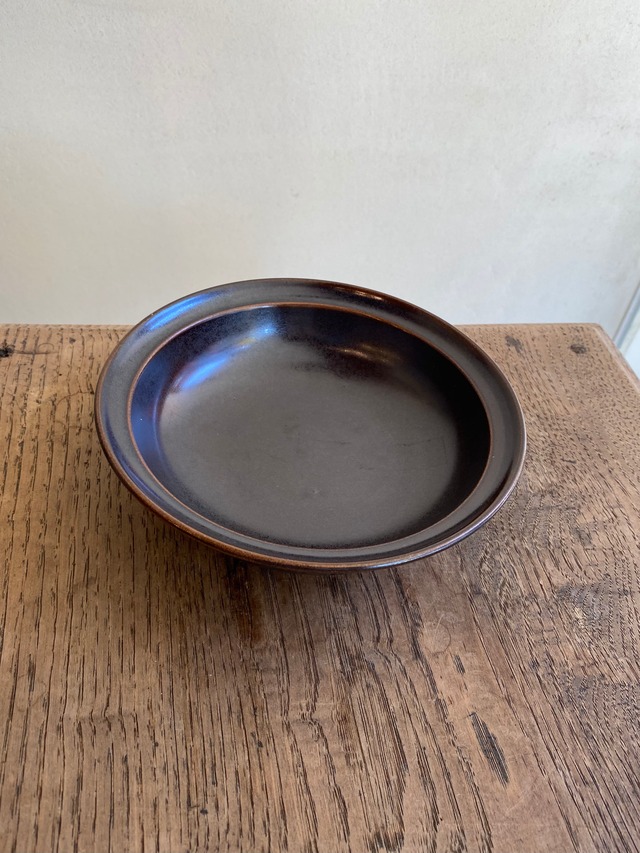益子の伊藤叔潔さんの15cmのリム皿です。 カップを置くとソーサーにもなるサイズです。 艶が部分的にのある焦げ茶ですが、釉薬の雰囲気には個体差がございます。 size:直径約15cm