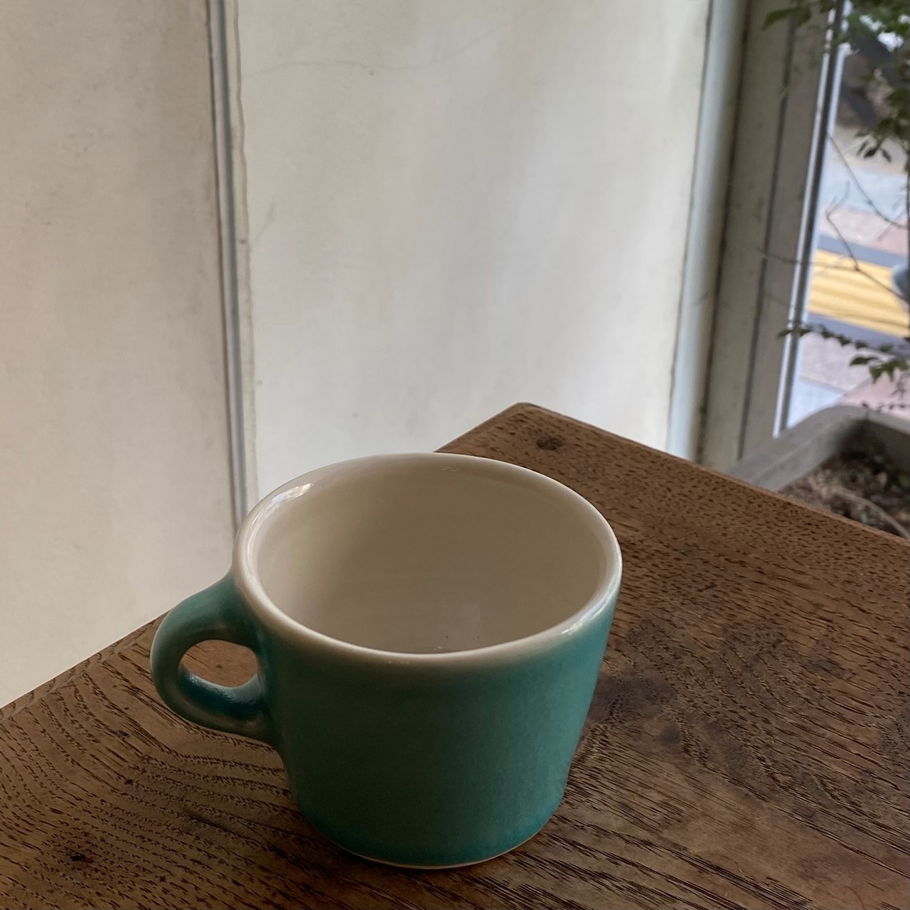 瀬古さんの定番色の翡翠のような明るいグリーンで、ハンドルがこじんまりとしていて可愛らしいデザインです。