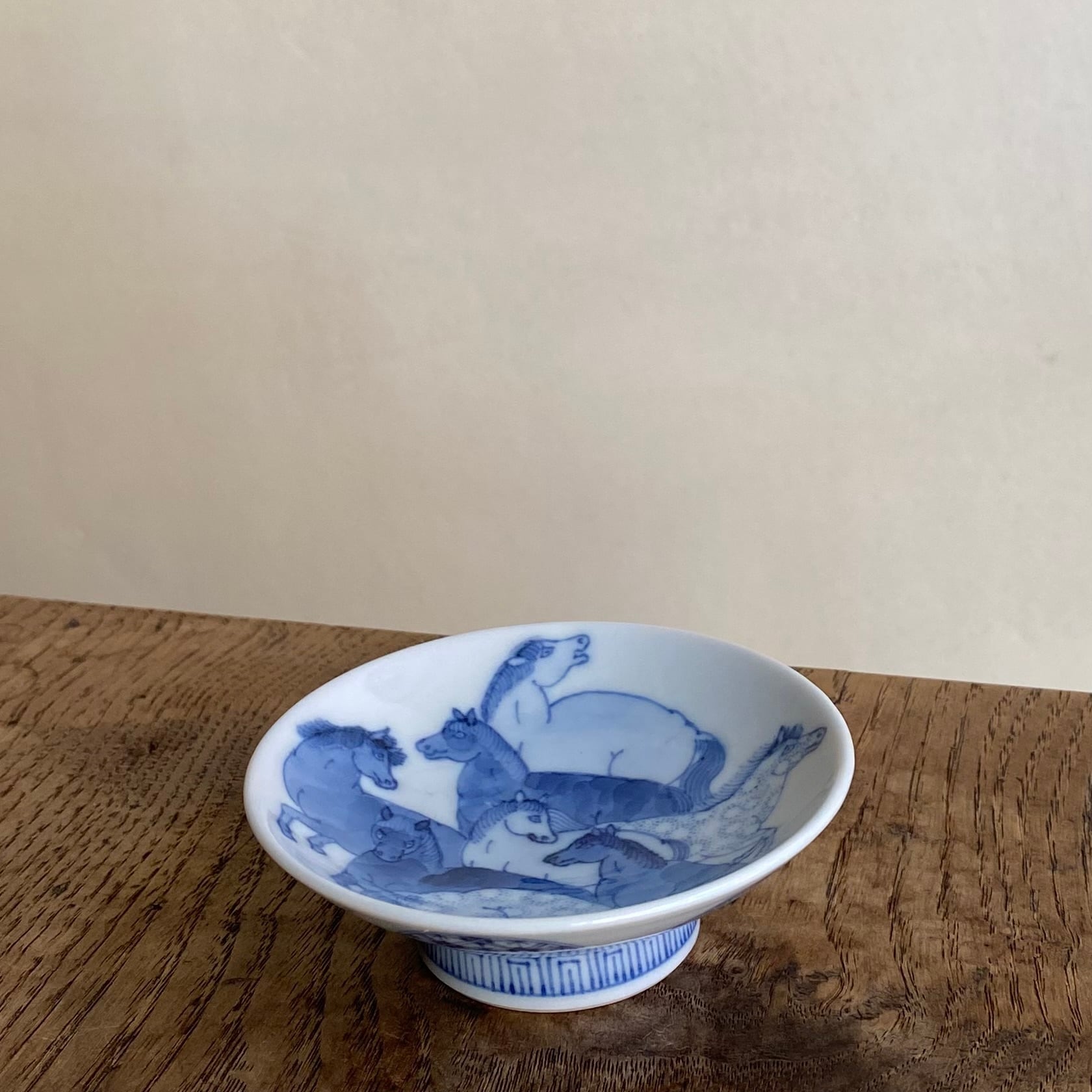 沢山のの馬が盃の内側に描かれています。川上さんが描く馬は生き生きとして人気がありますが特に水玉模様の馬が可愛いのです。