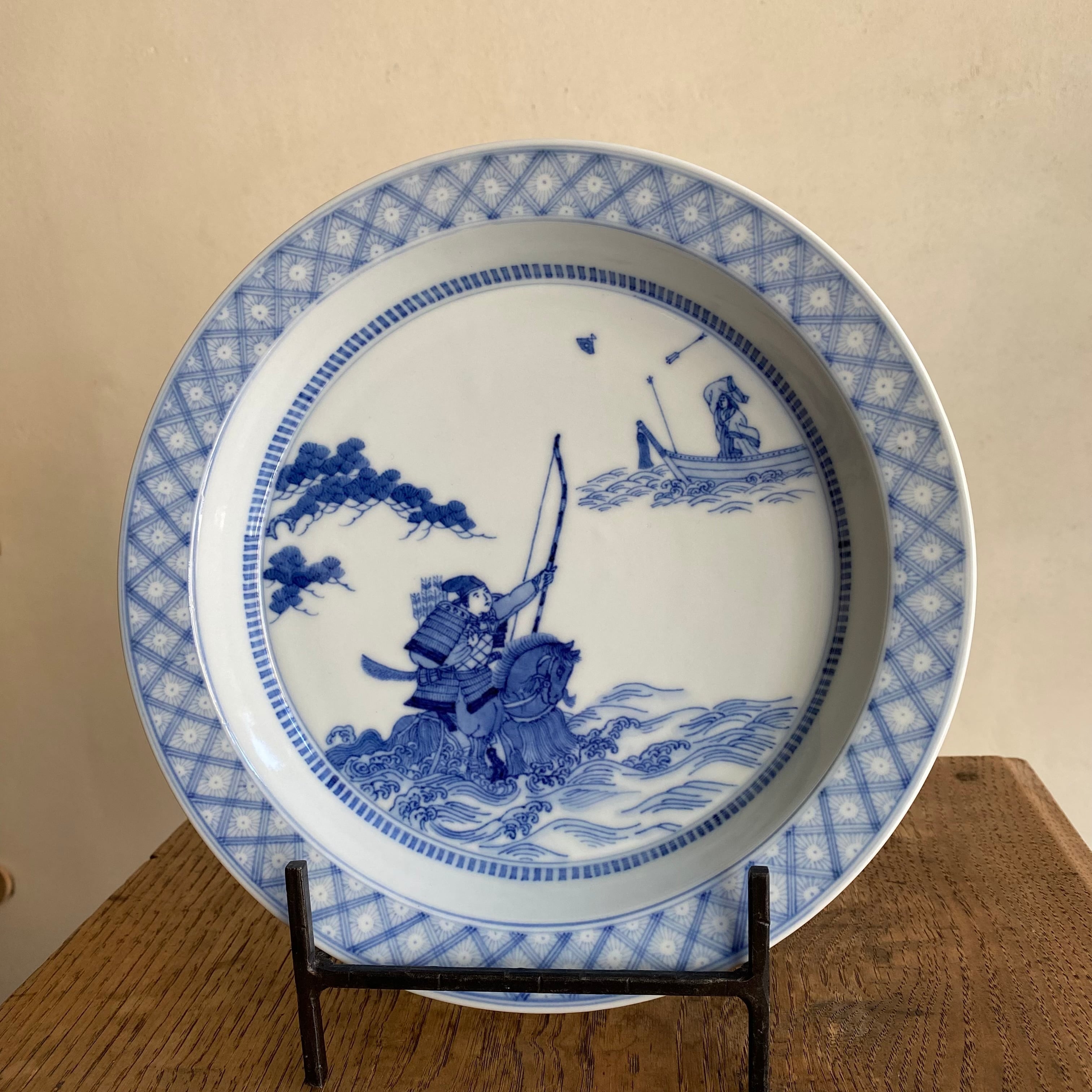平家が源氏を挑発するために、船上の女性が掲げた扇の的を、弓の名手である那須与一が見事に射抜いたという有名なシーンが描かれています。