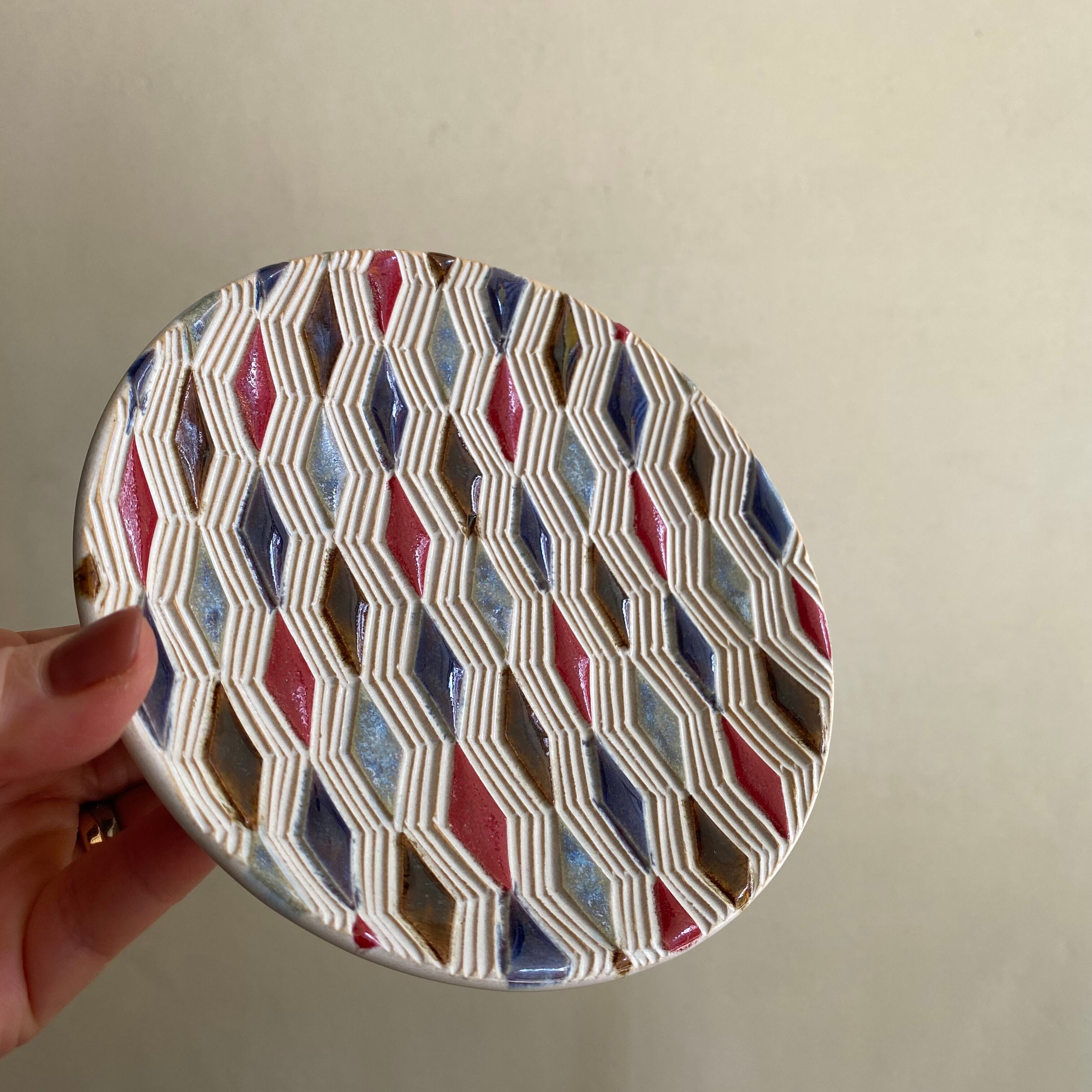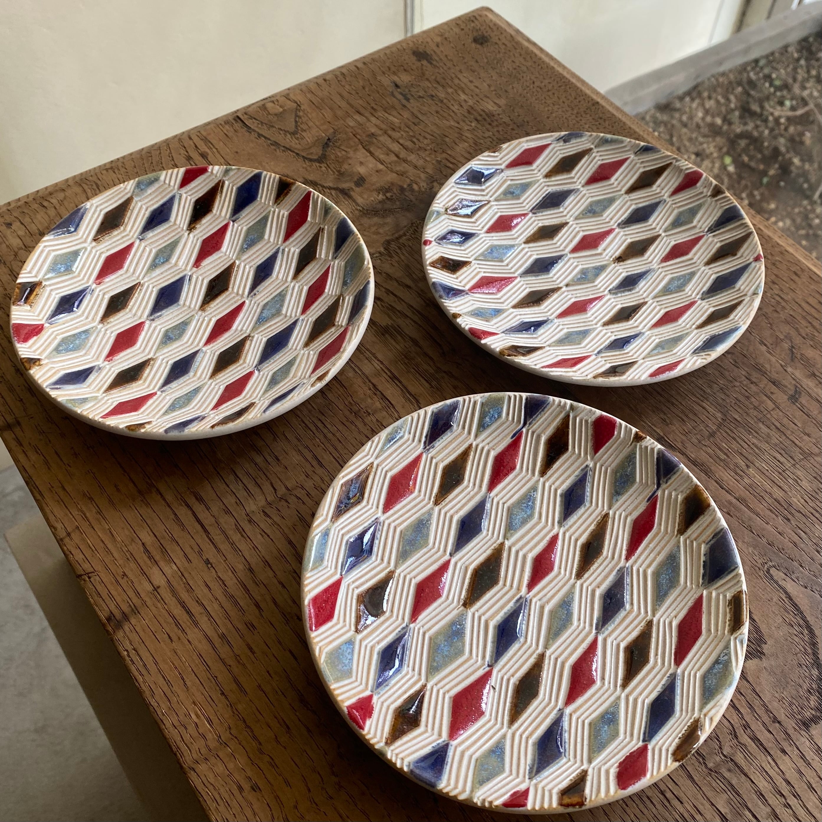 現在開催中の2人展「冬へのモチーフ」でご紹介をしている小林さんの丸い小皿です。