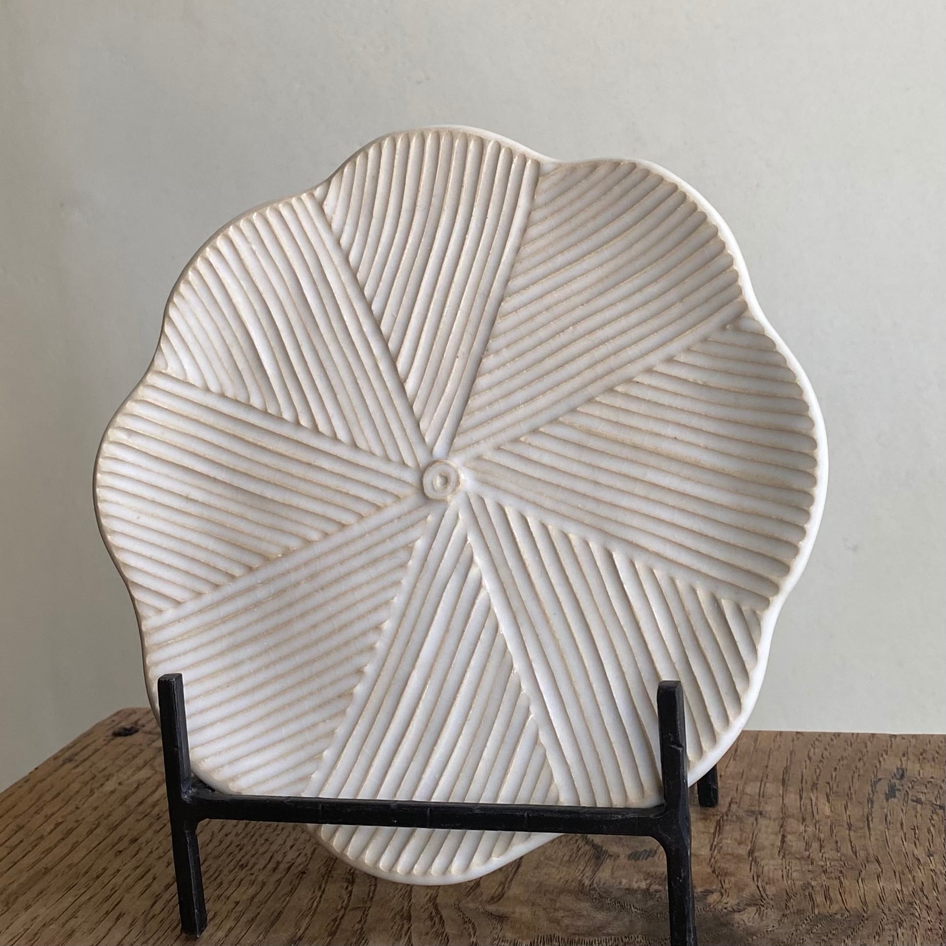 ヘラやカンナなどの道具を使って素地の表面を削り、立体的な稜線模様(りょうせんもよう)をつける装飾方法です。