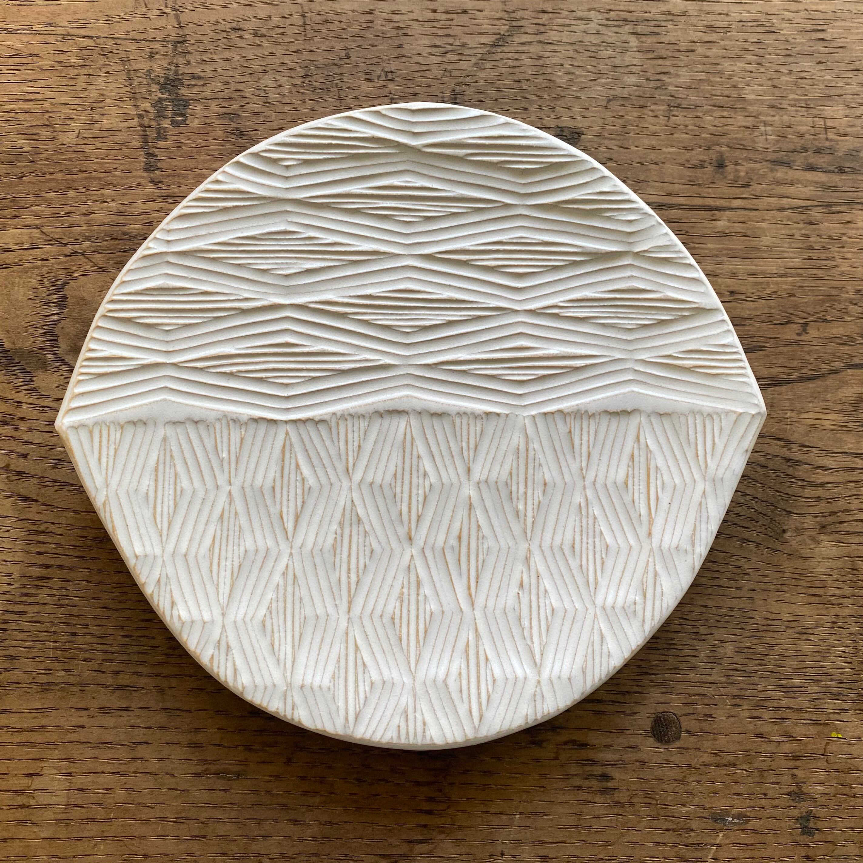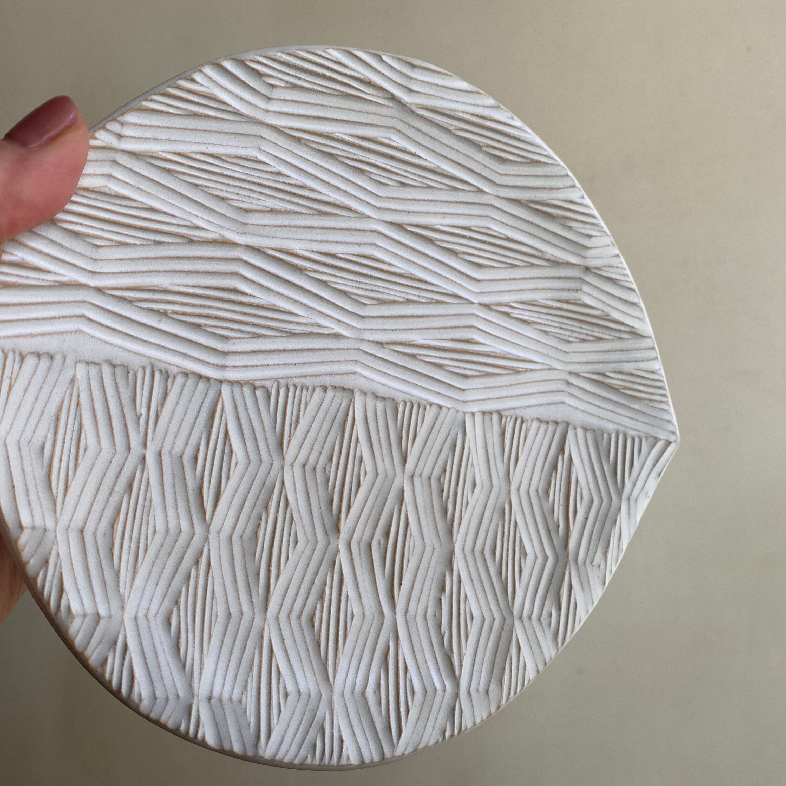 ヘラやカンナなどの道具を使って素地の表面を削り、立体的な稜線模様(りょうせんもよう)をつける装飾方法です。