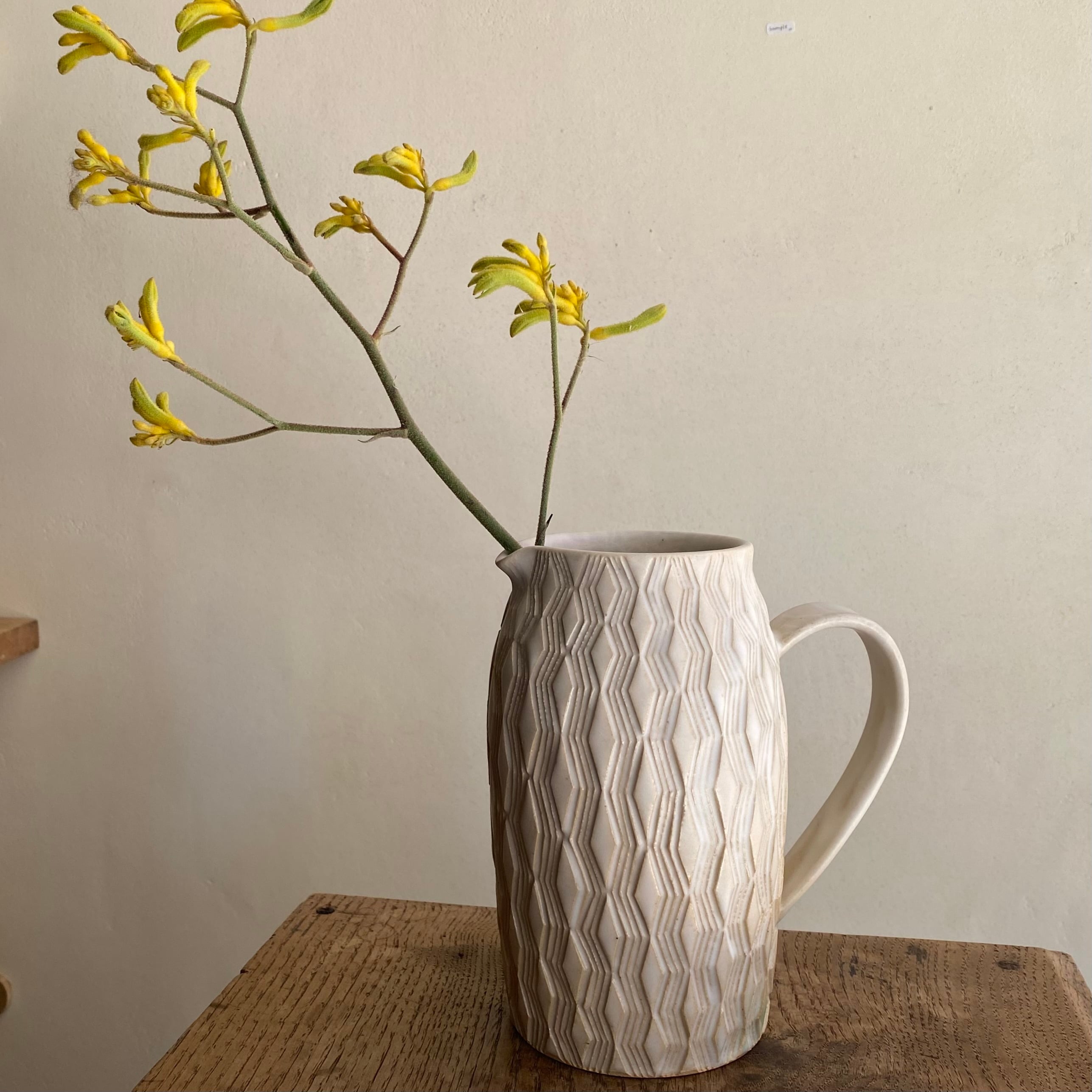 現在開催中の2人展「冬へのモチーフ」でご紹介をしている大き目のピッチャーです。