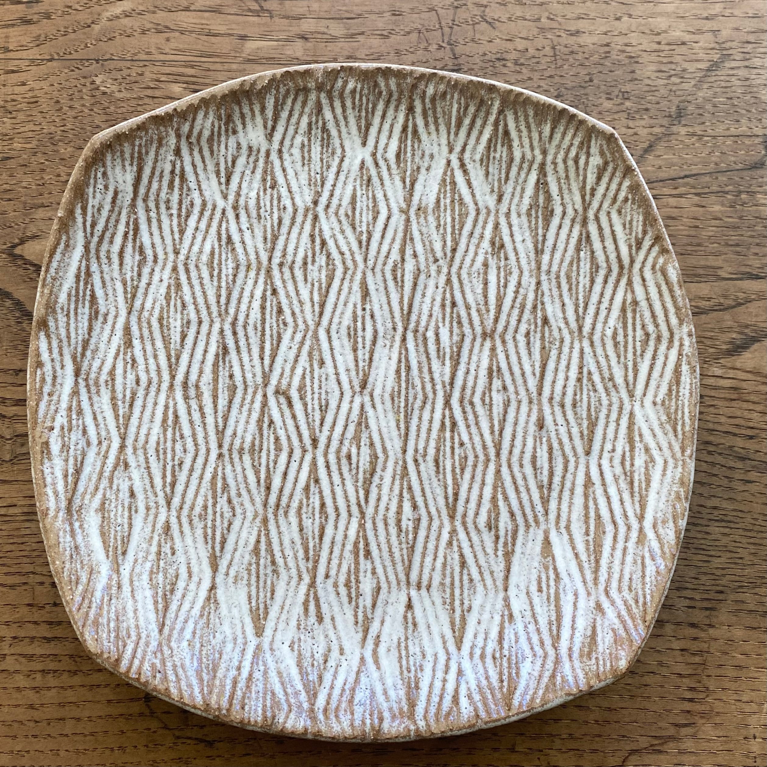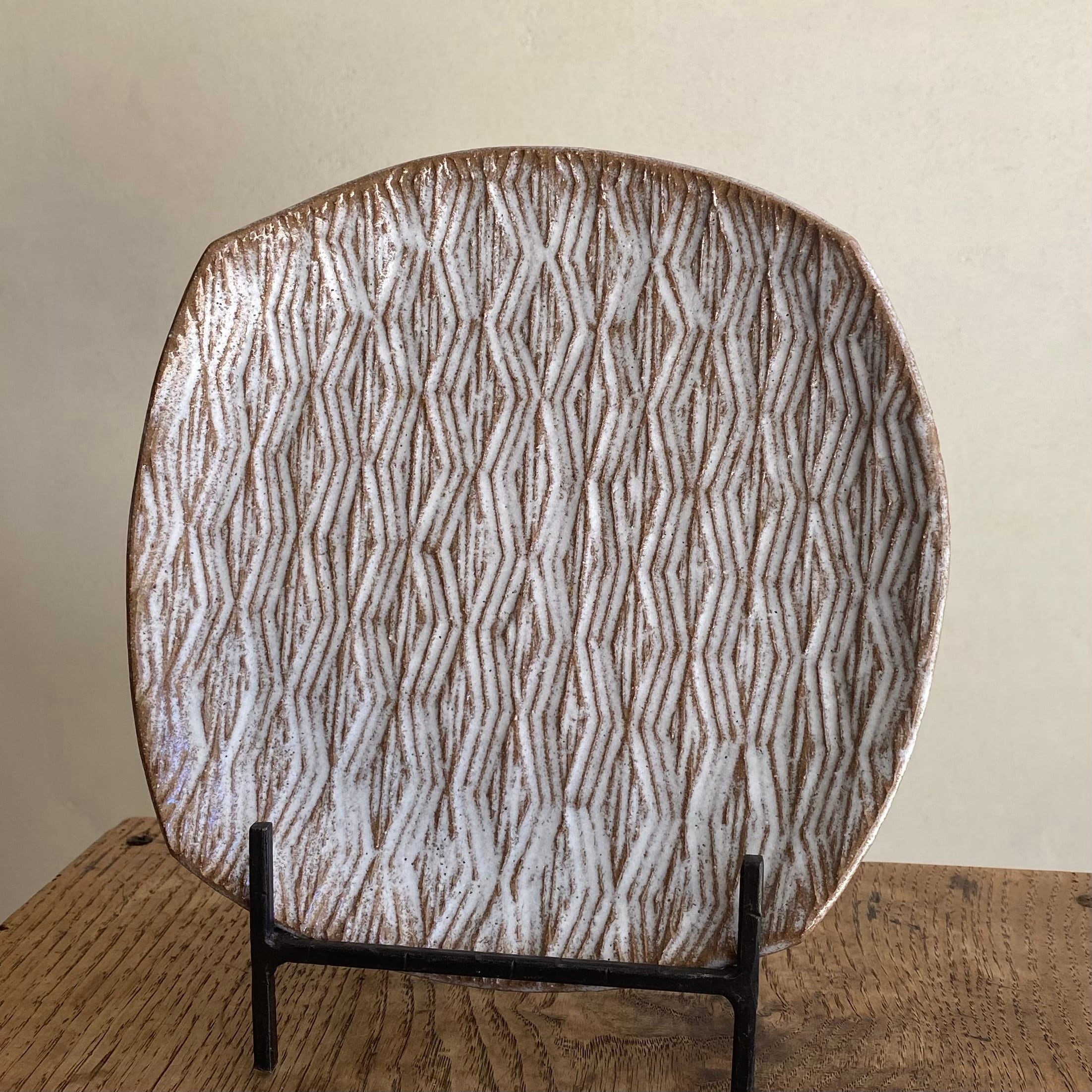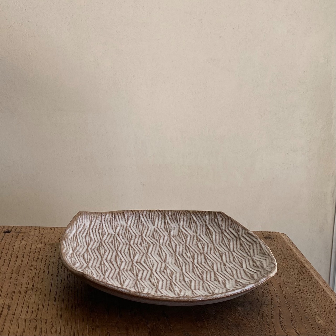 現在開催中の2人展「冬へのモチーフ」でご紹介をしているシノギの技法でモチーフを施したお皿です。