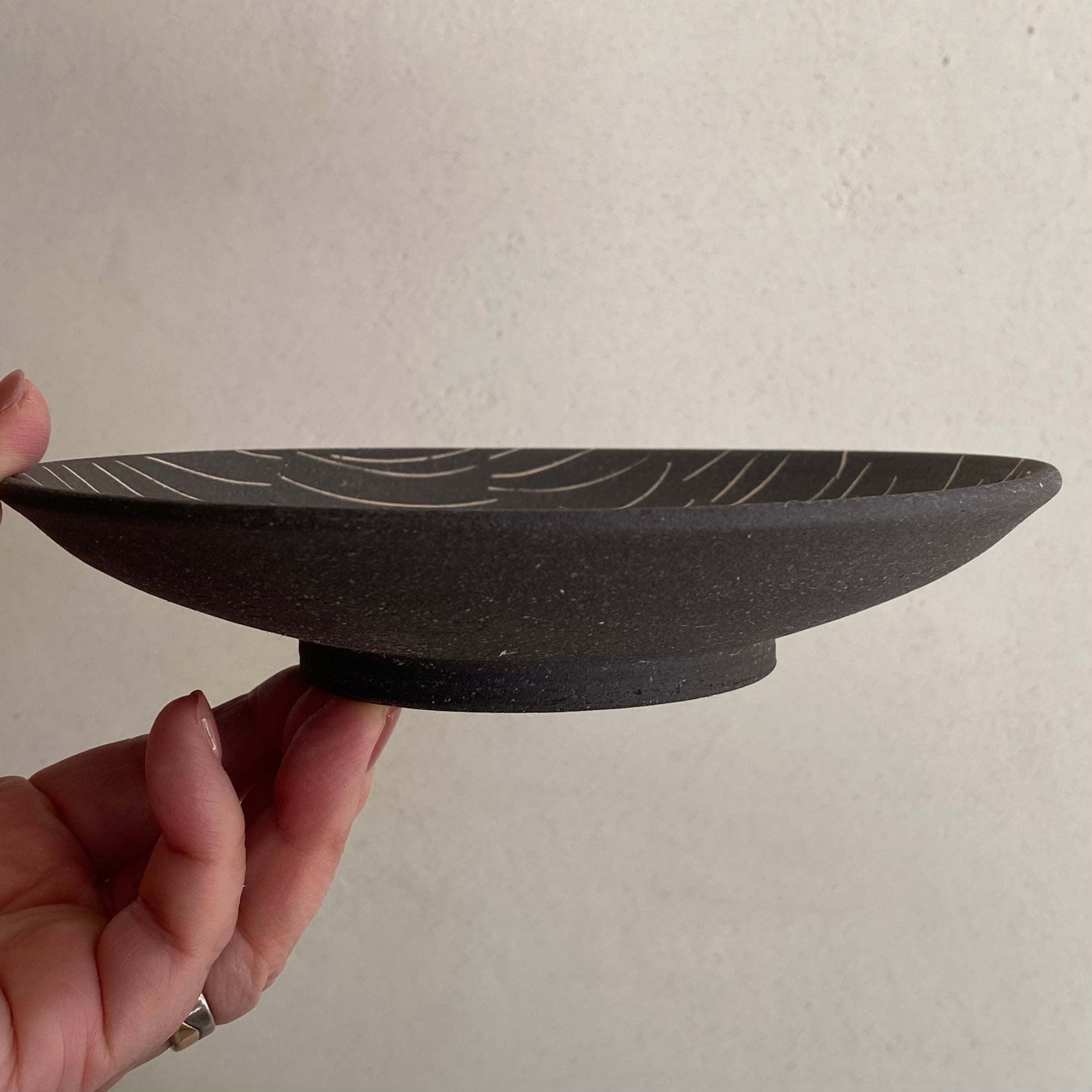 現在開催中の2人展「冬へのモチーフ」でご紹介をしている象嵌の丸皿です。