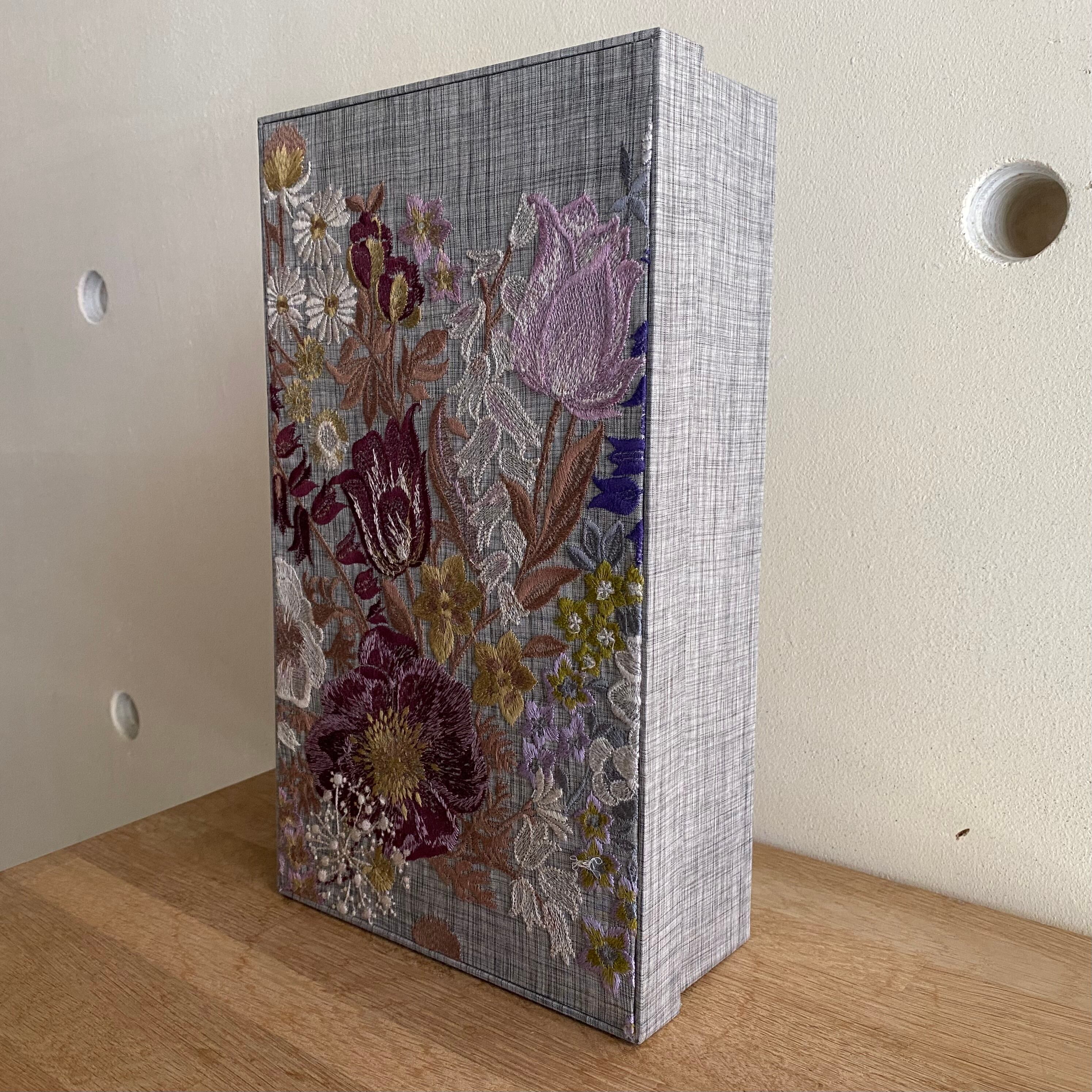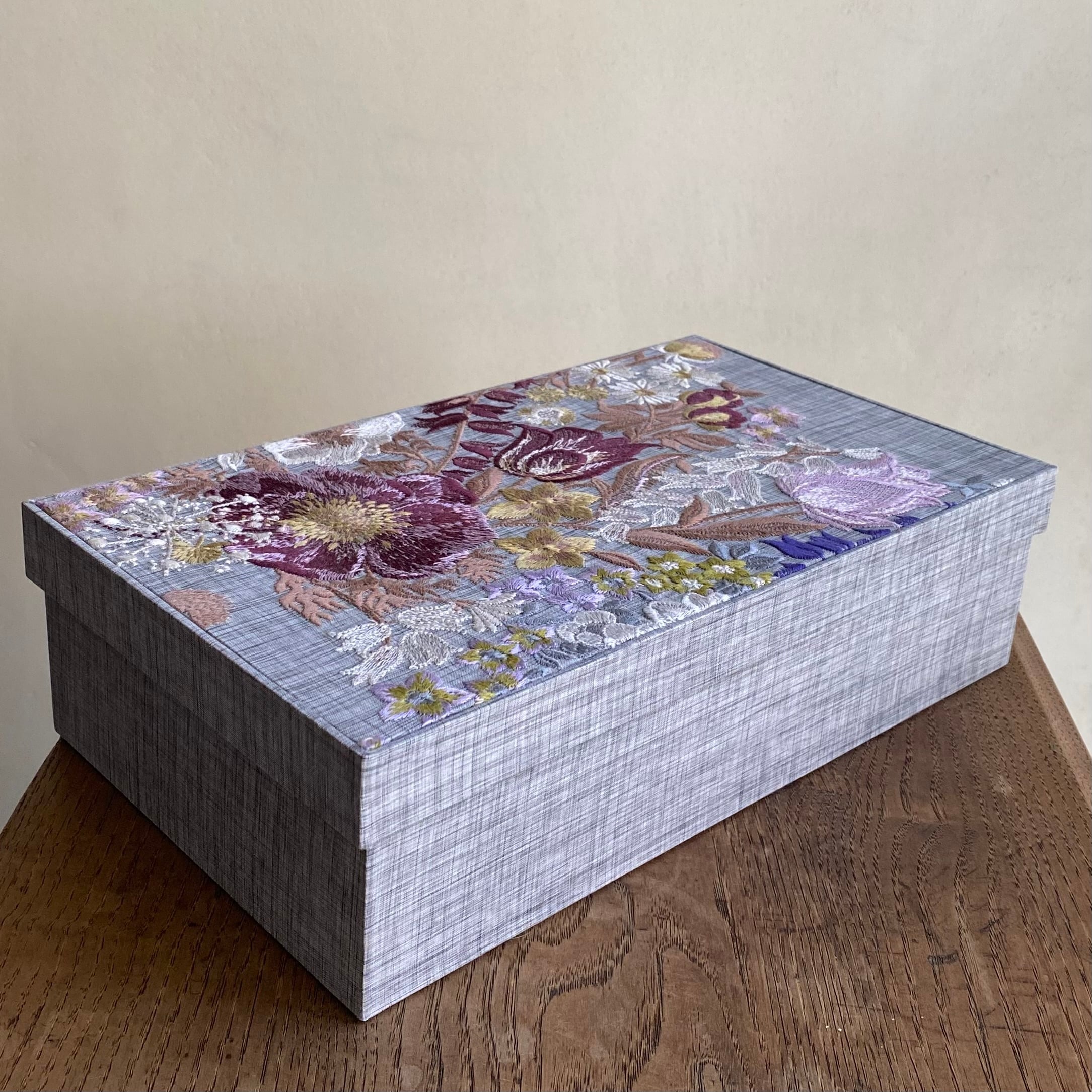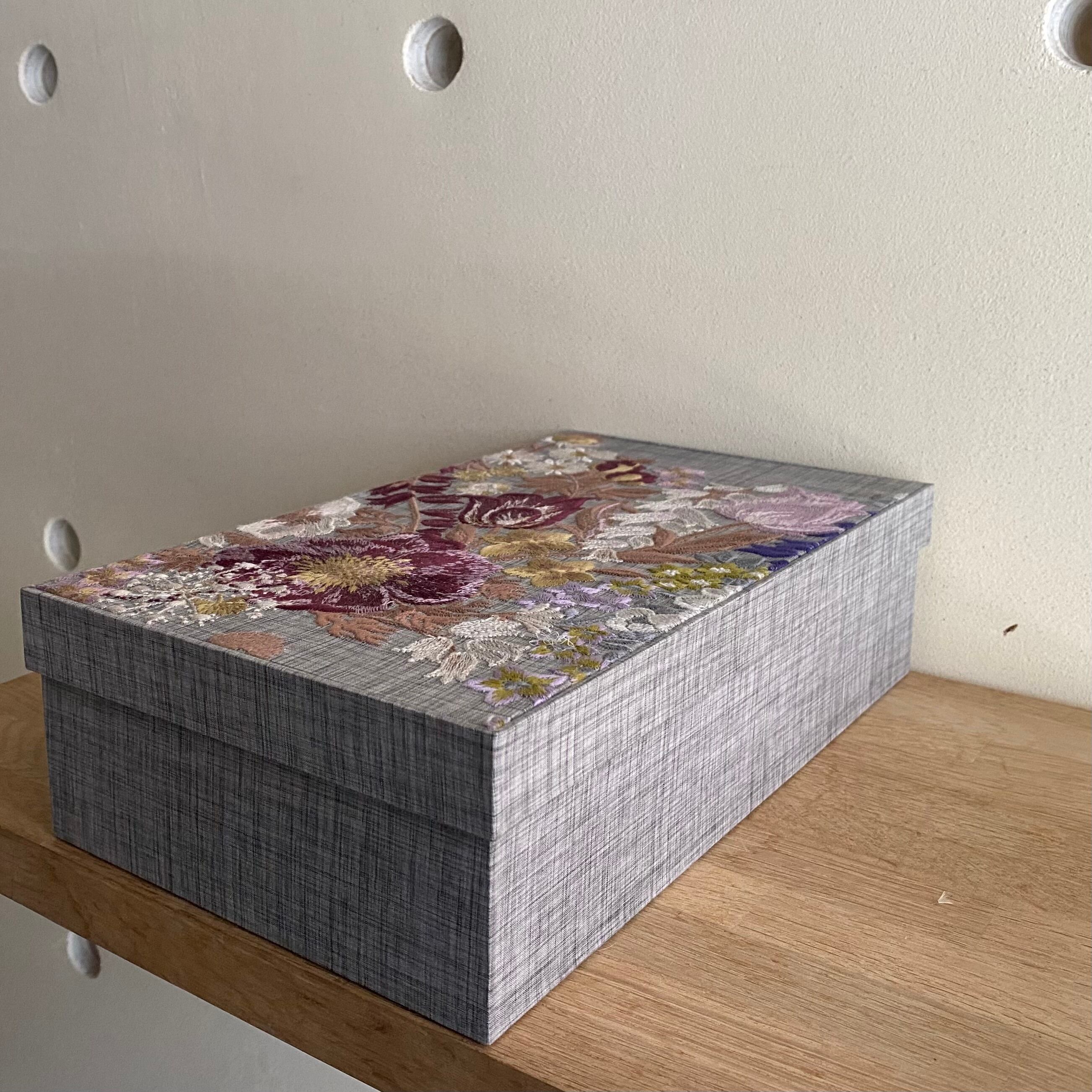 14日まで開催中の「冬の贈りもの展」でご紹介している、カルトナージュのBOXです。