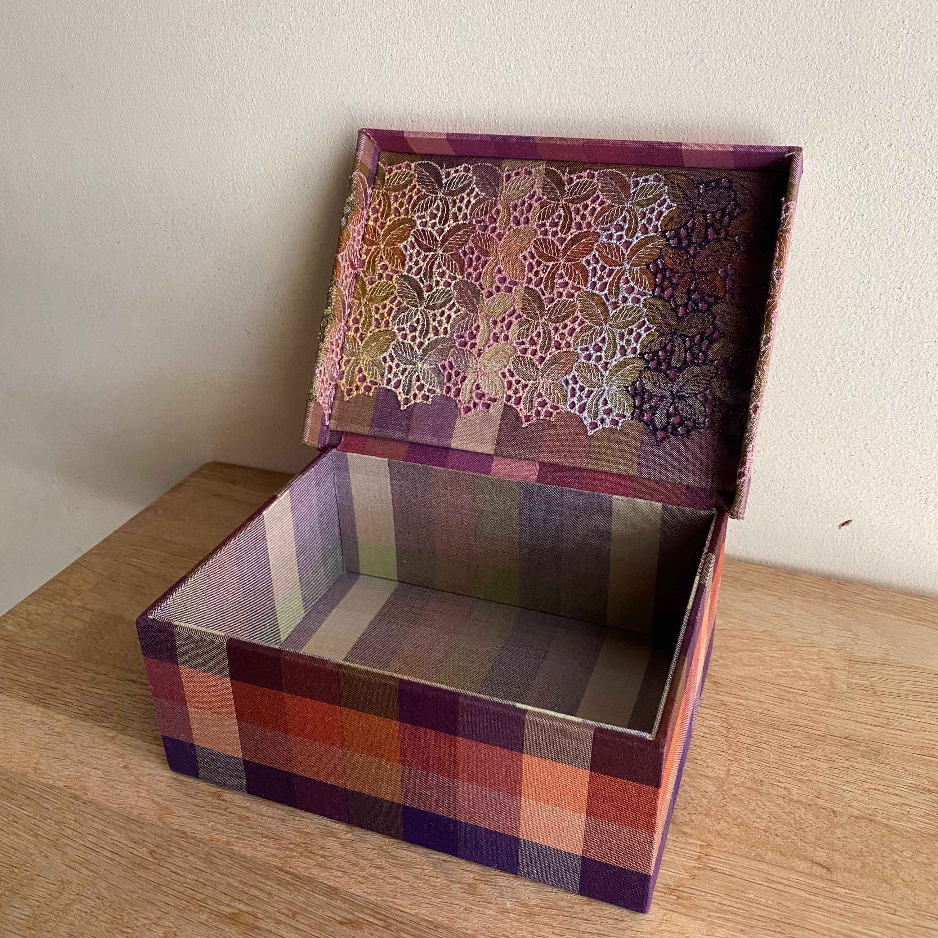 14日まで開催中の「冬の贈りもの展」でご紹介している、カルトナージュのBOXです。