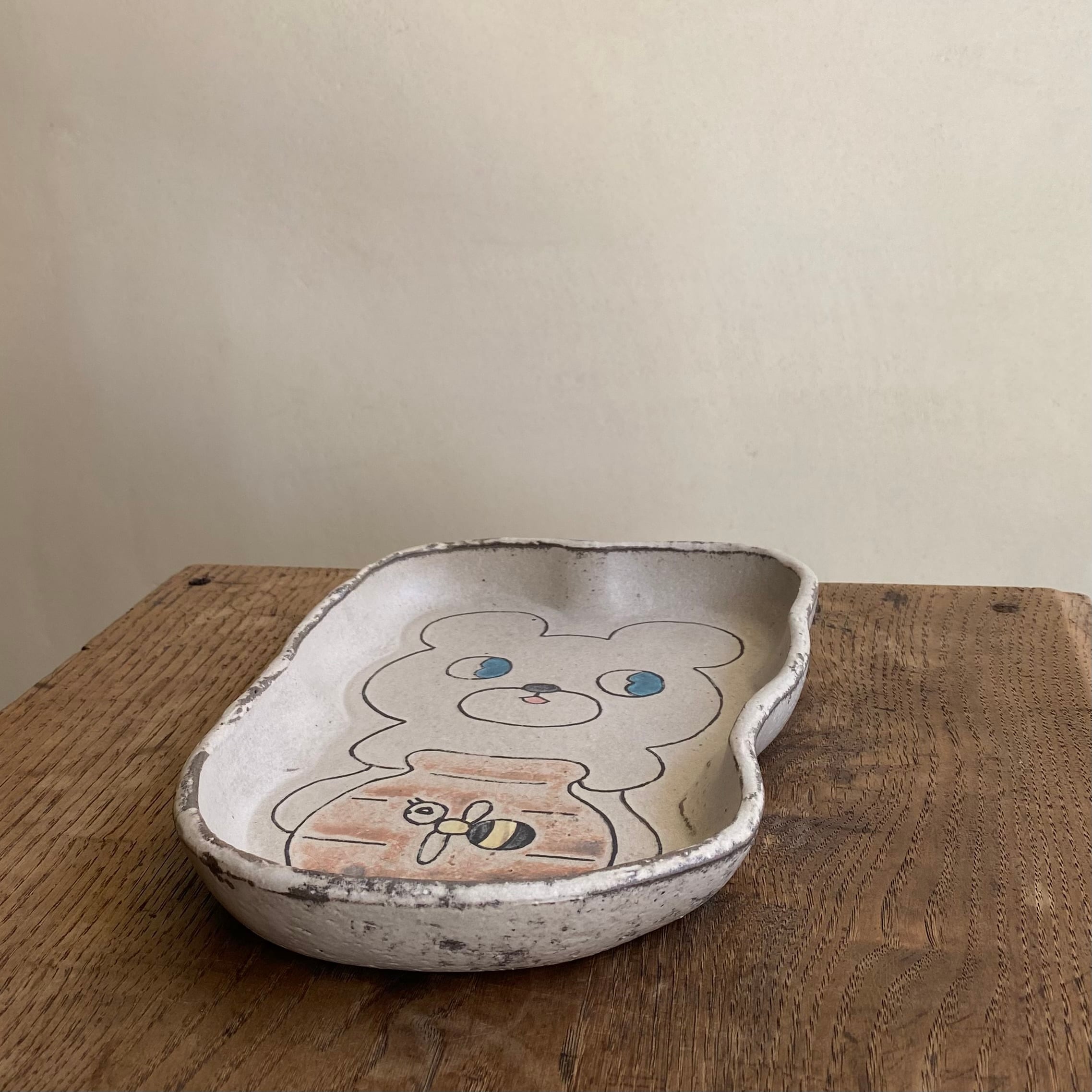 28日まで開催中「小谷田潤 うつわ展」でご紹介をしているカワイイクマ型のお皿です。