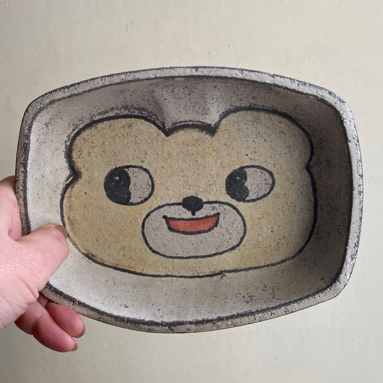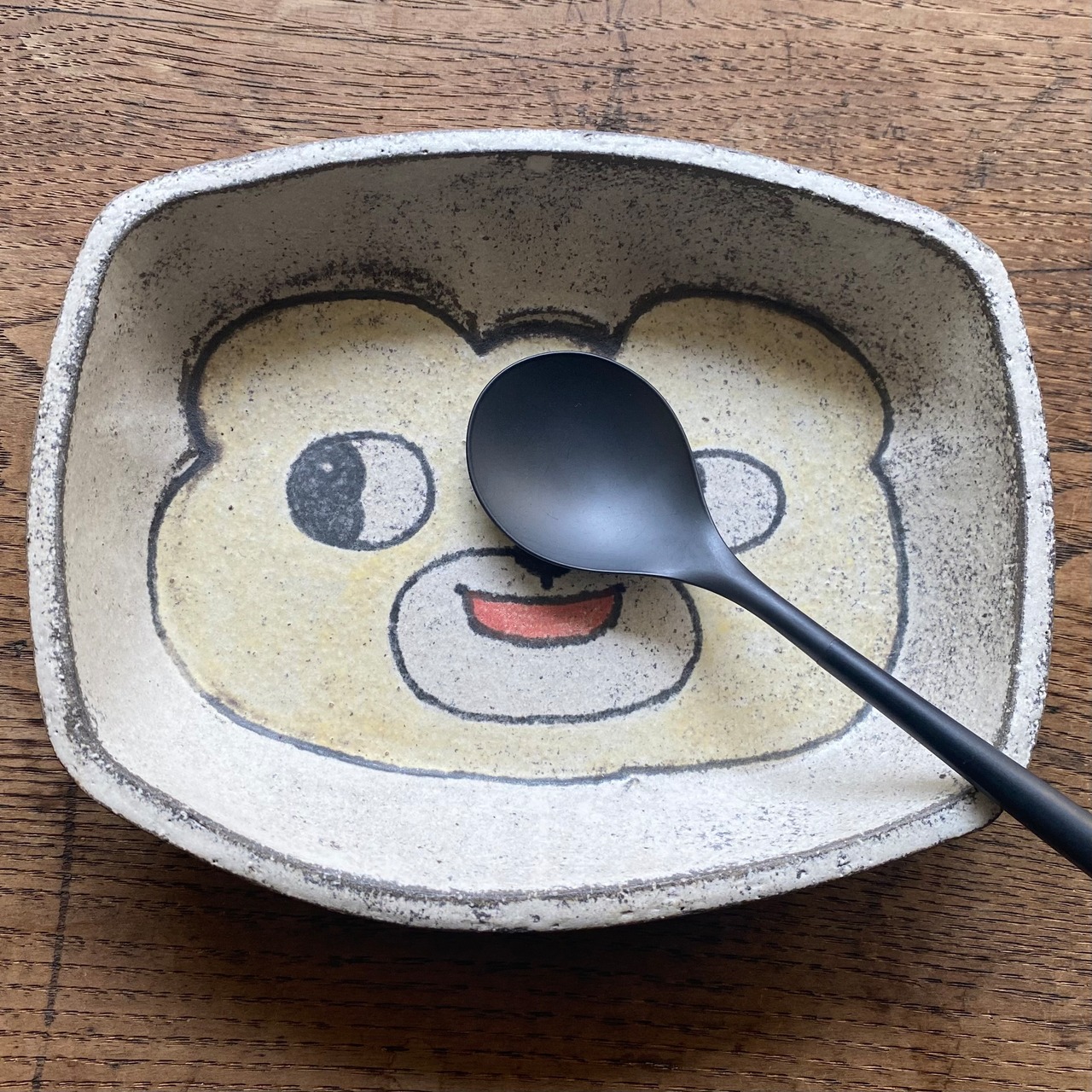 28日まで開催中「小谷田潤 うつわ展」でご紹介をしているクマの顔のお皿です。