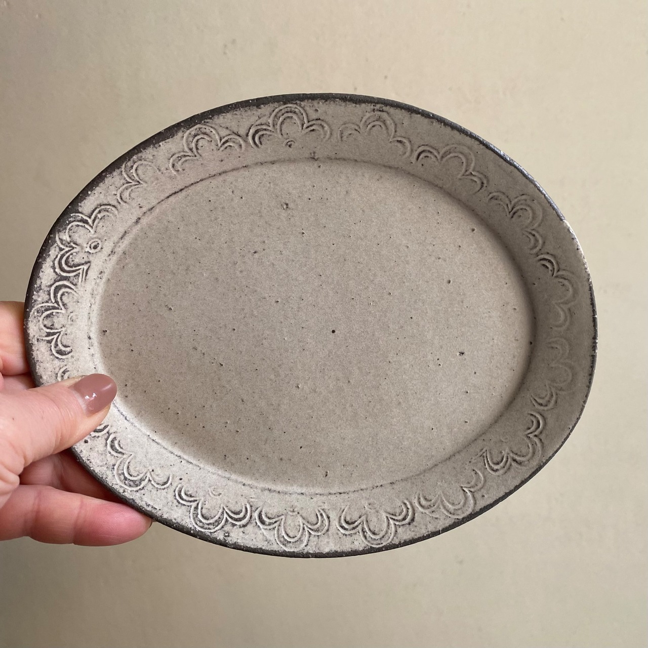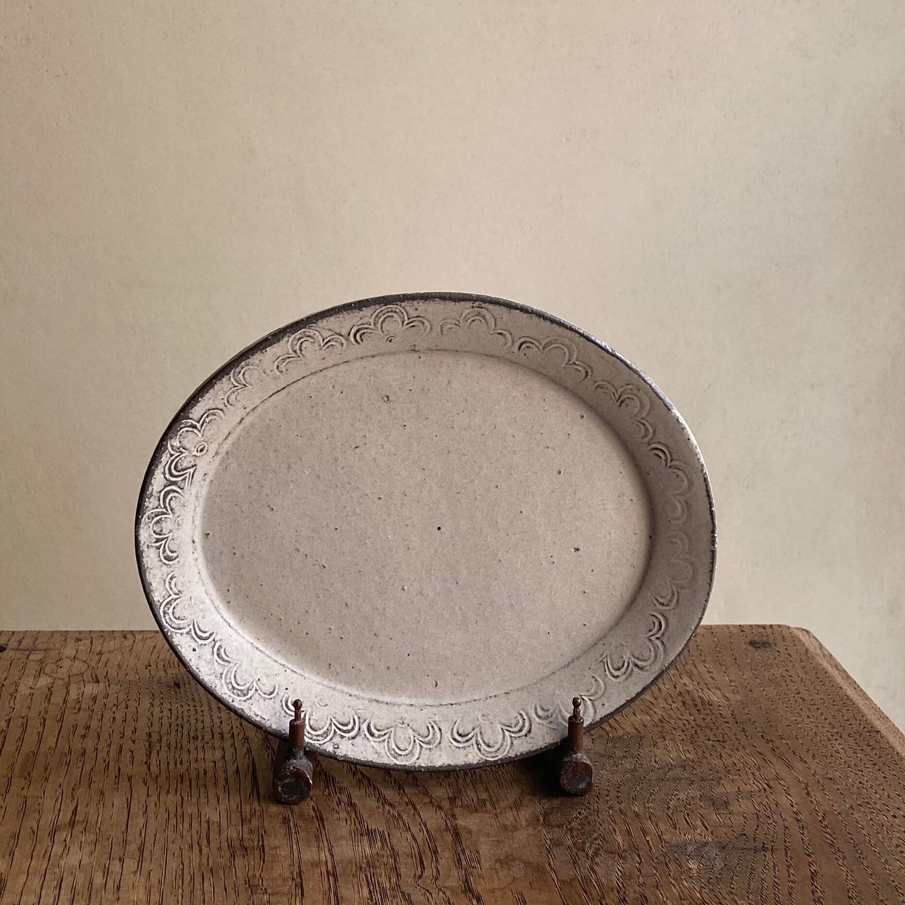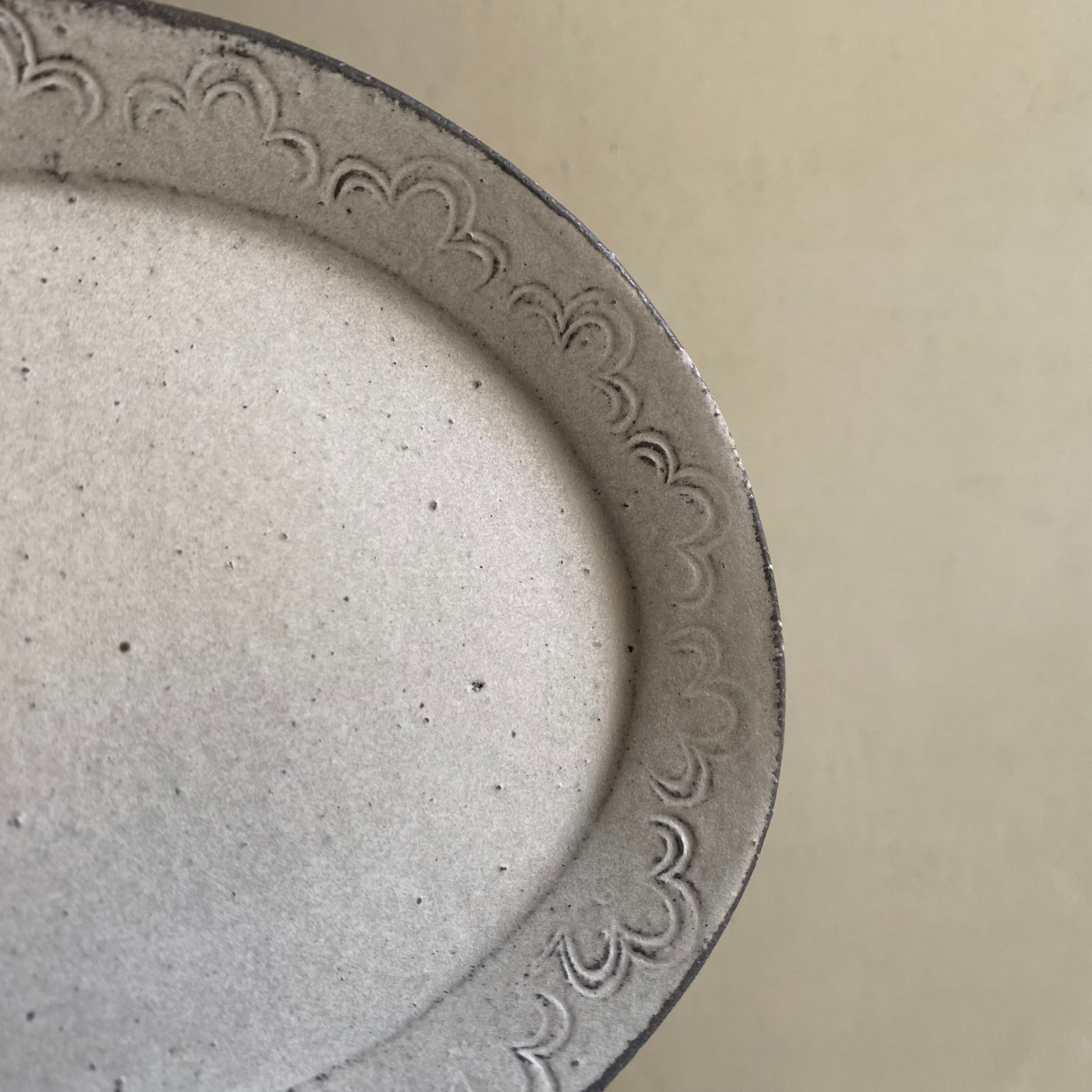 28日まで開催中「小谷田潤 うつわ展」でご紹介をしている、粉引のオーバル皿です。