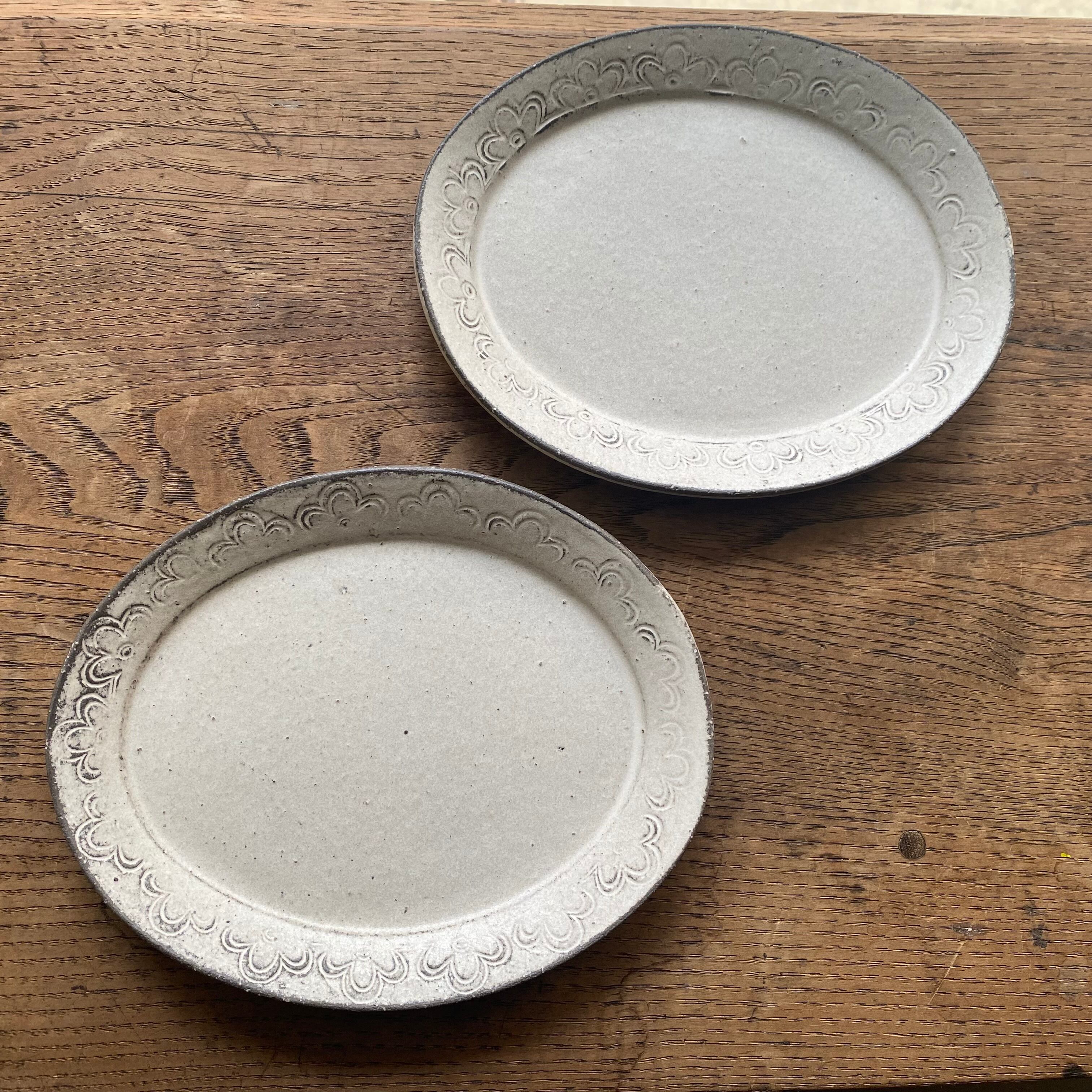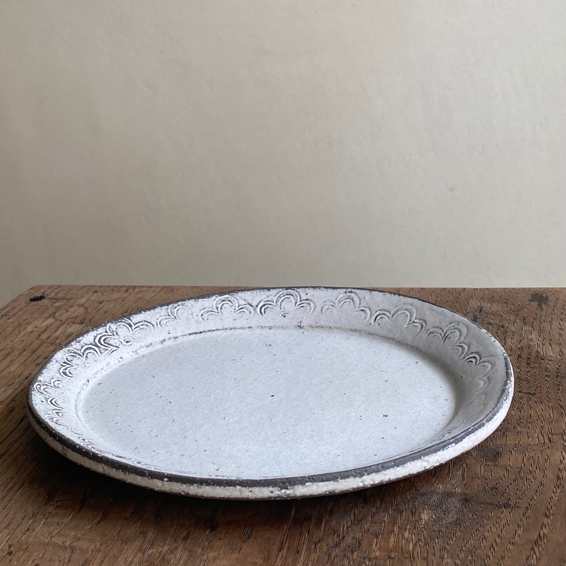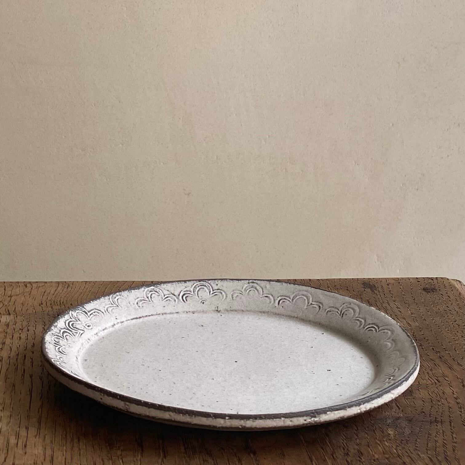 28日まで開催中「小谷田潤 うつわ展」でご紹介をしている、粉引のオーバル皿です。