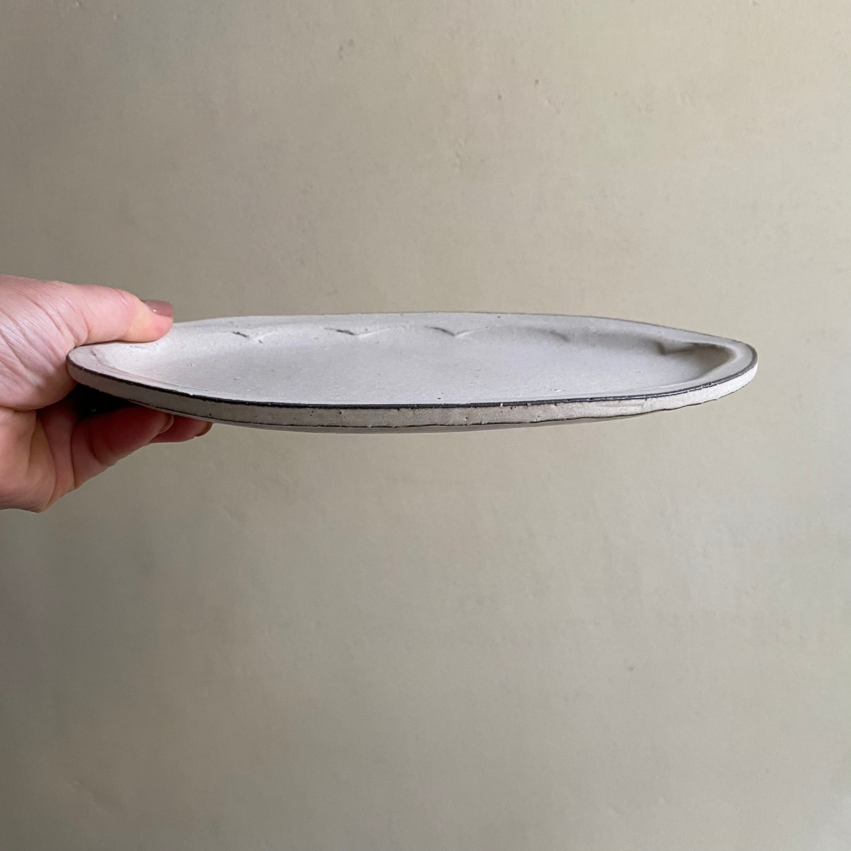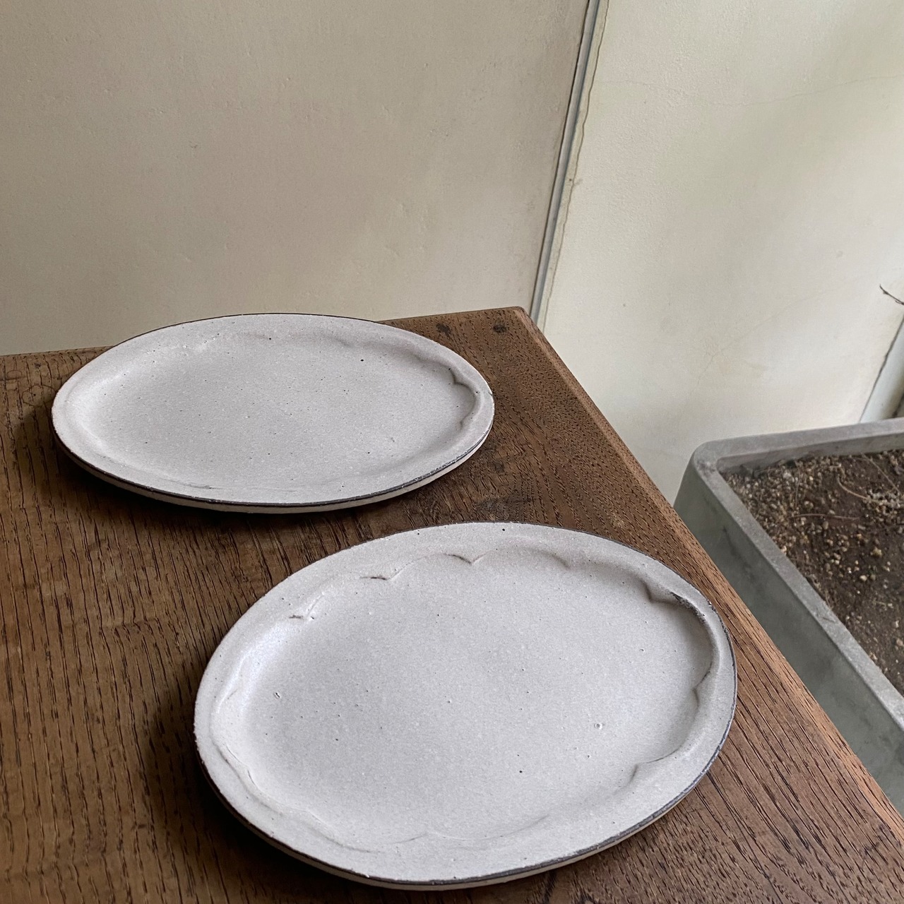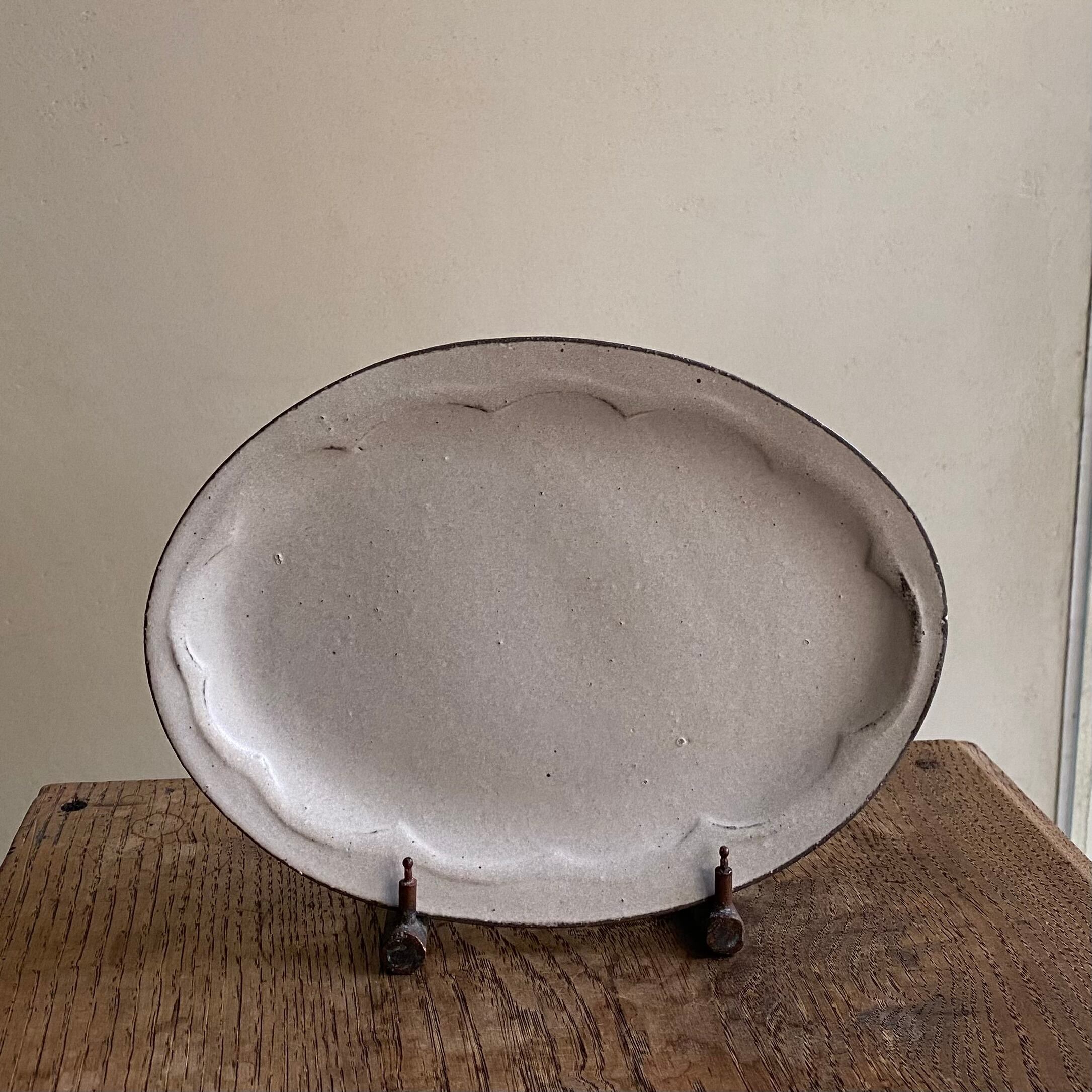 28日まで開催中「小谷田潤 うつわ展」でご紹介をしている、粉引のオーバル皿です。