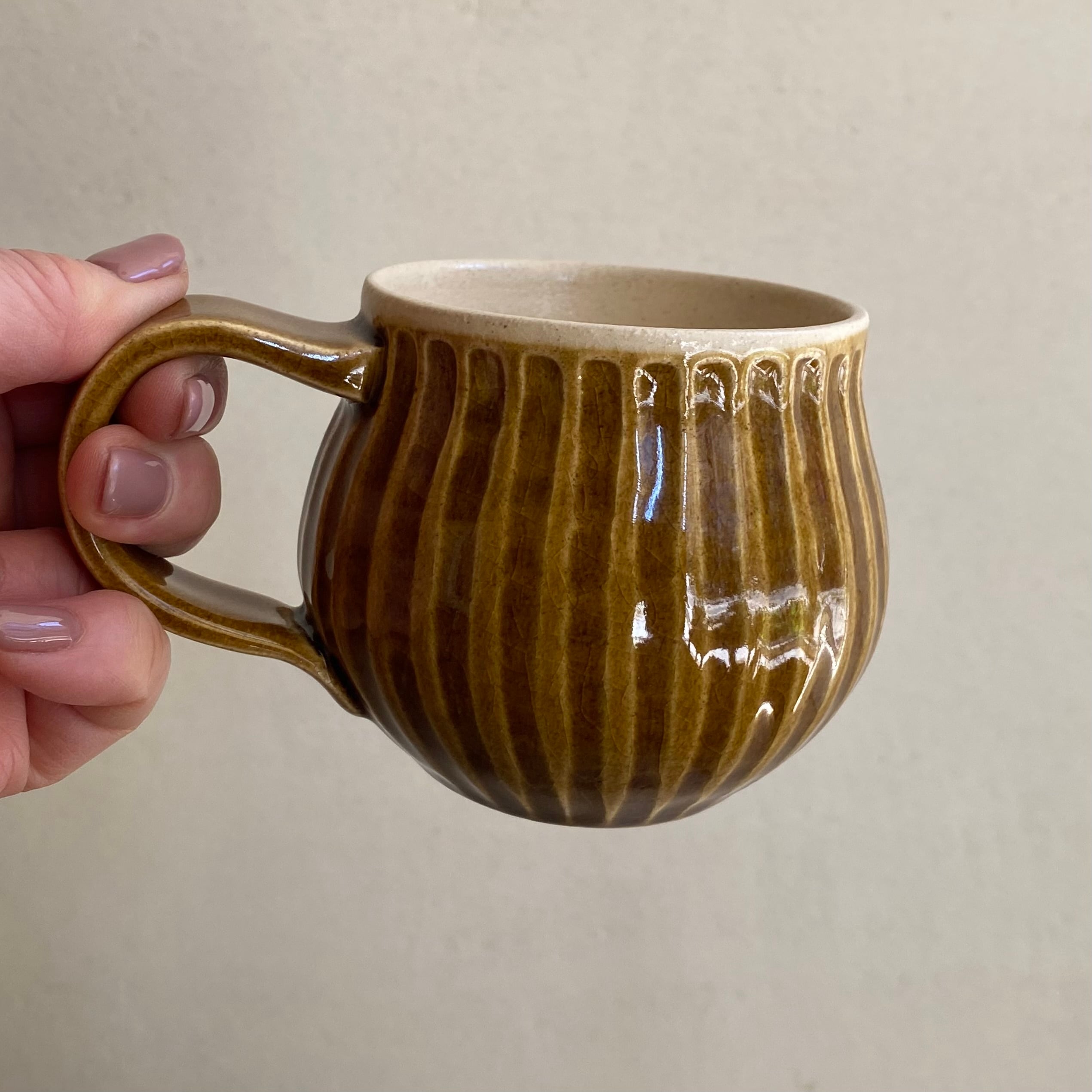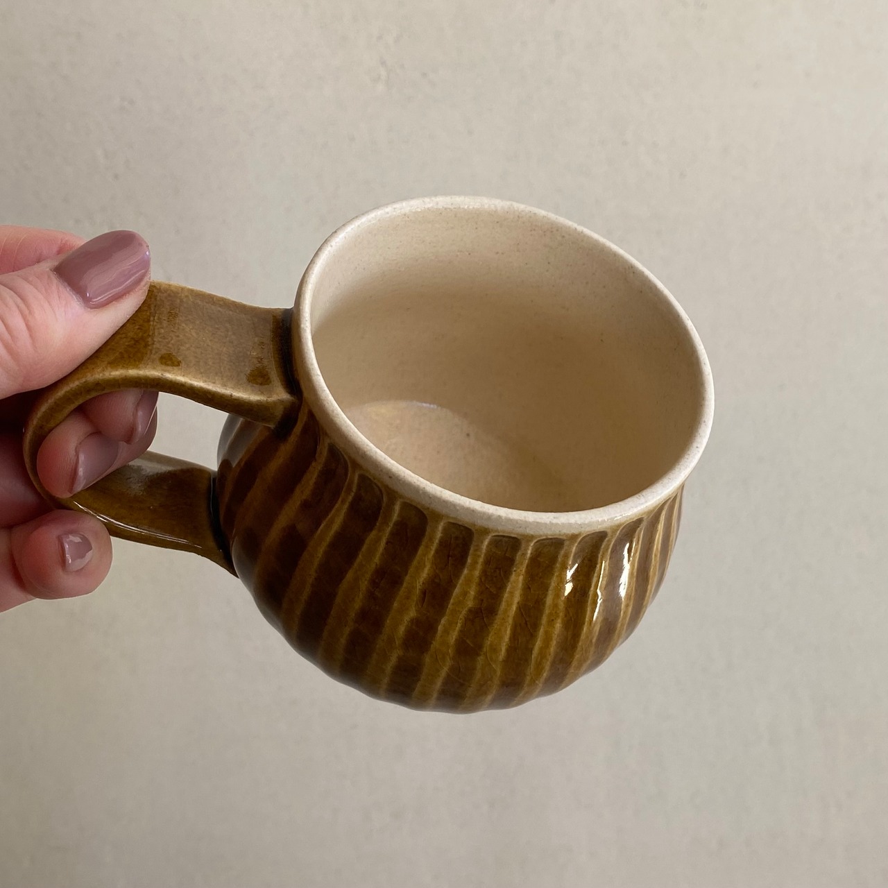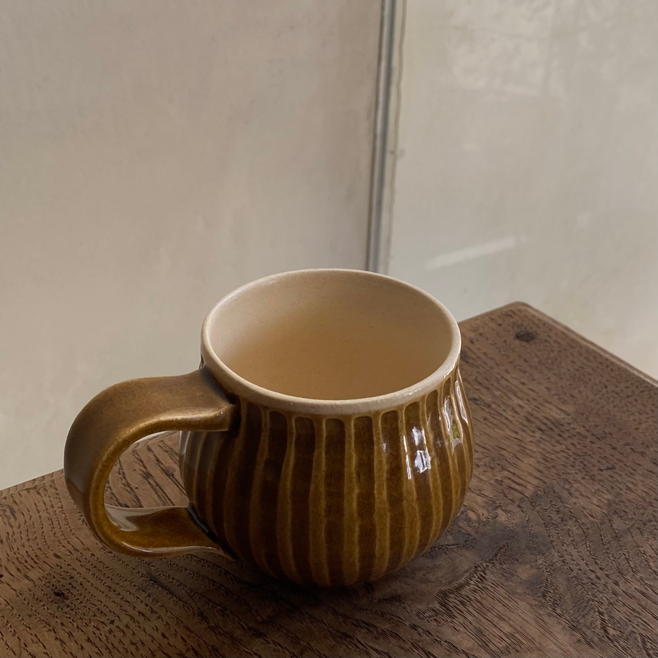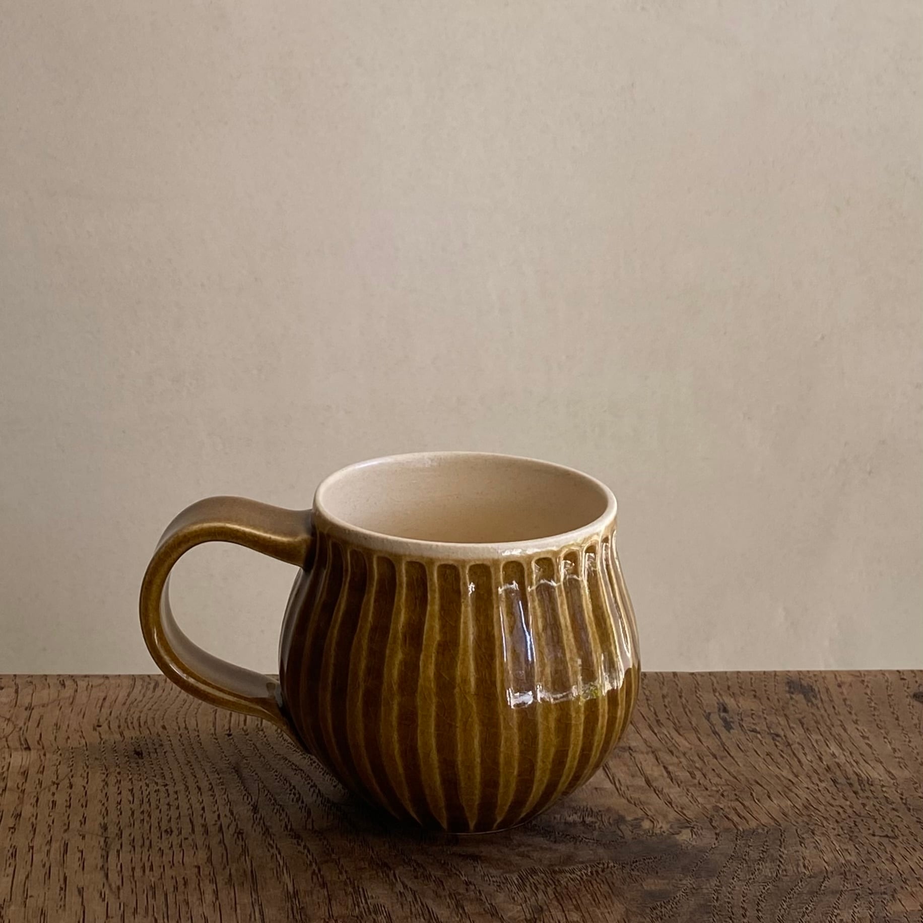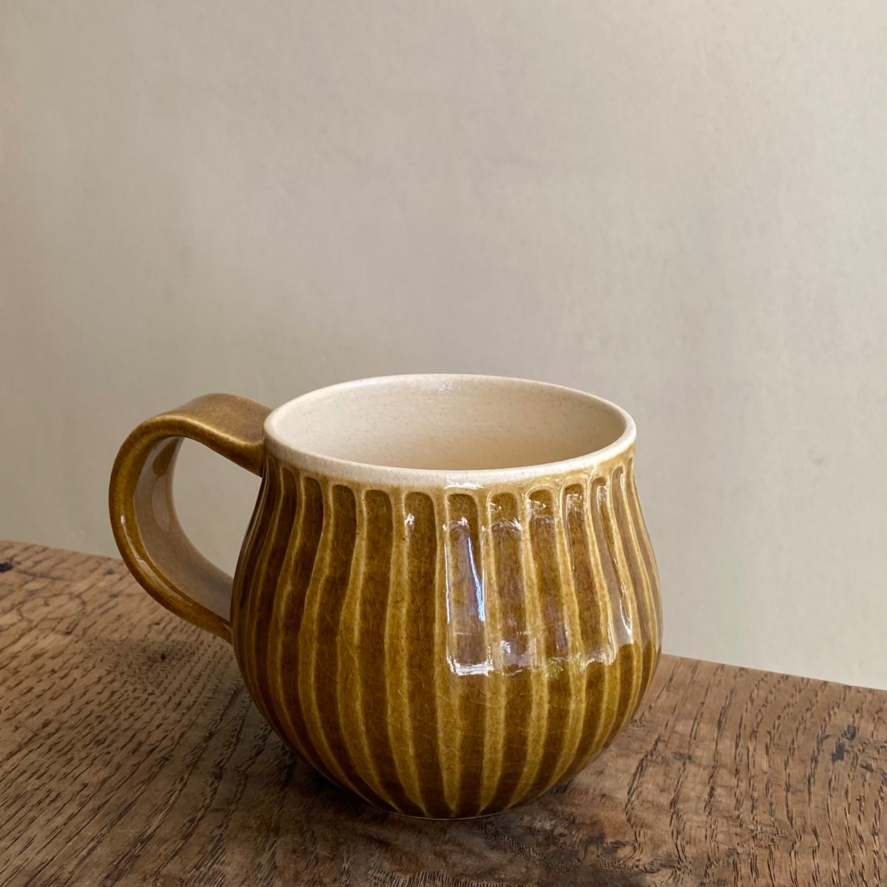 28日まで開催中「小谷田潤 うつわ展」でご紹介をしている、丸いシルエットのマグカップです。飴色の釉薬で見た目にもホッコリ温かく、冬は特に出番が多そうです。