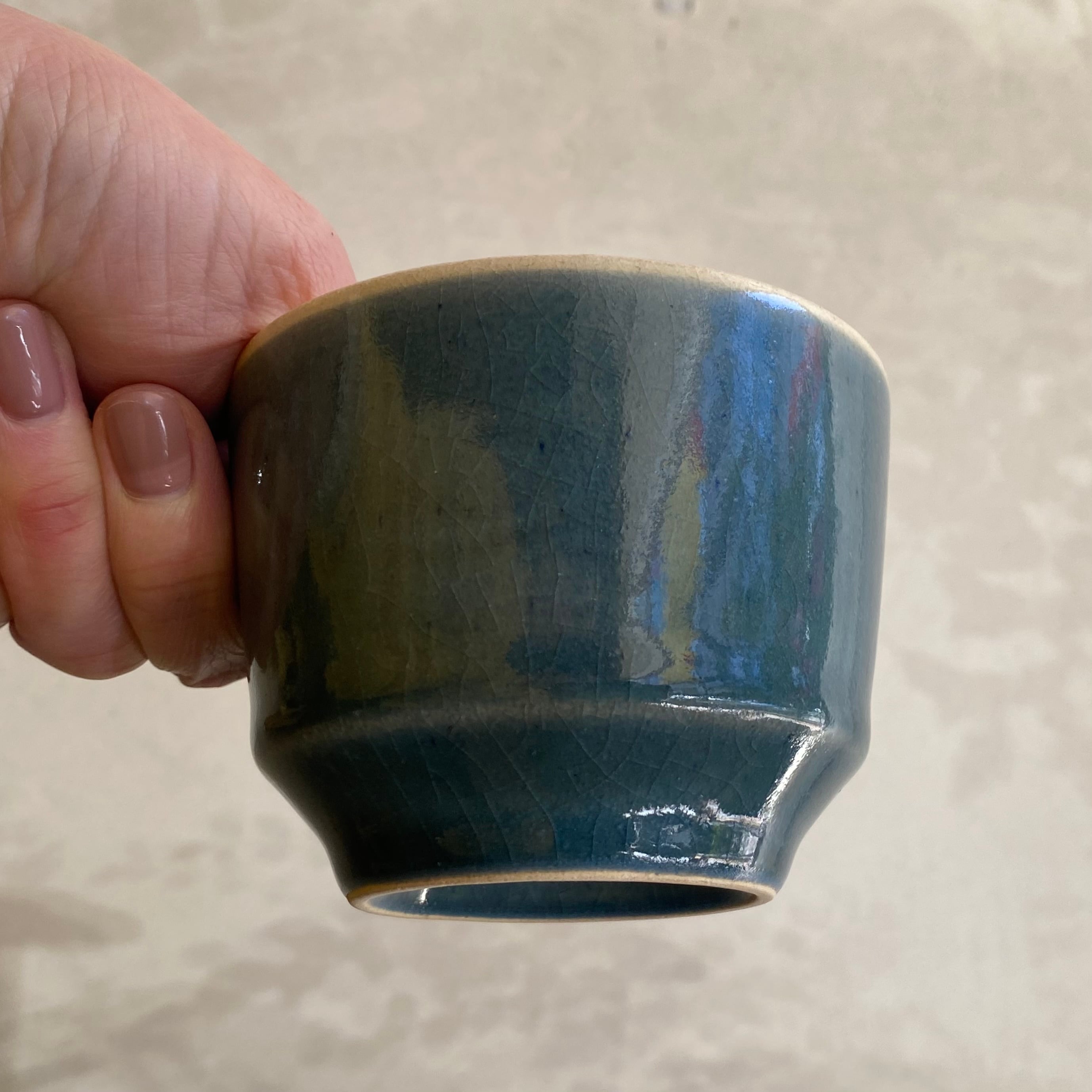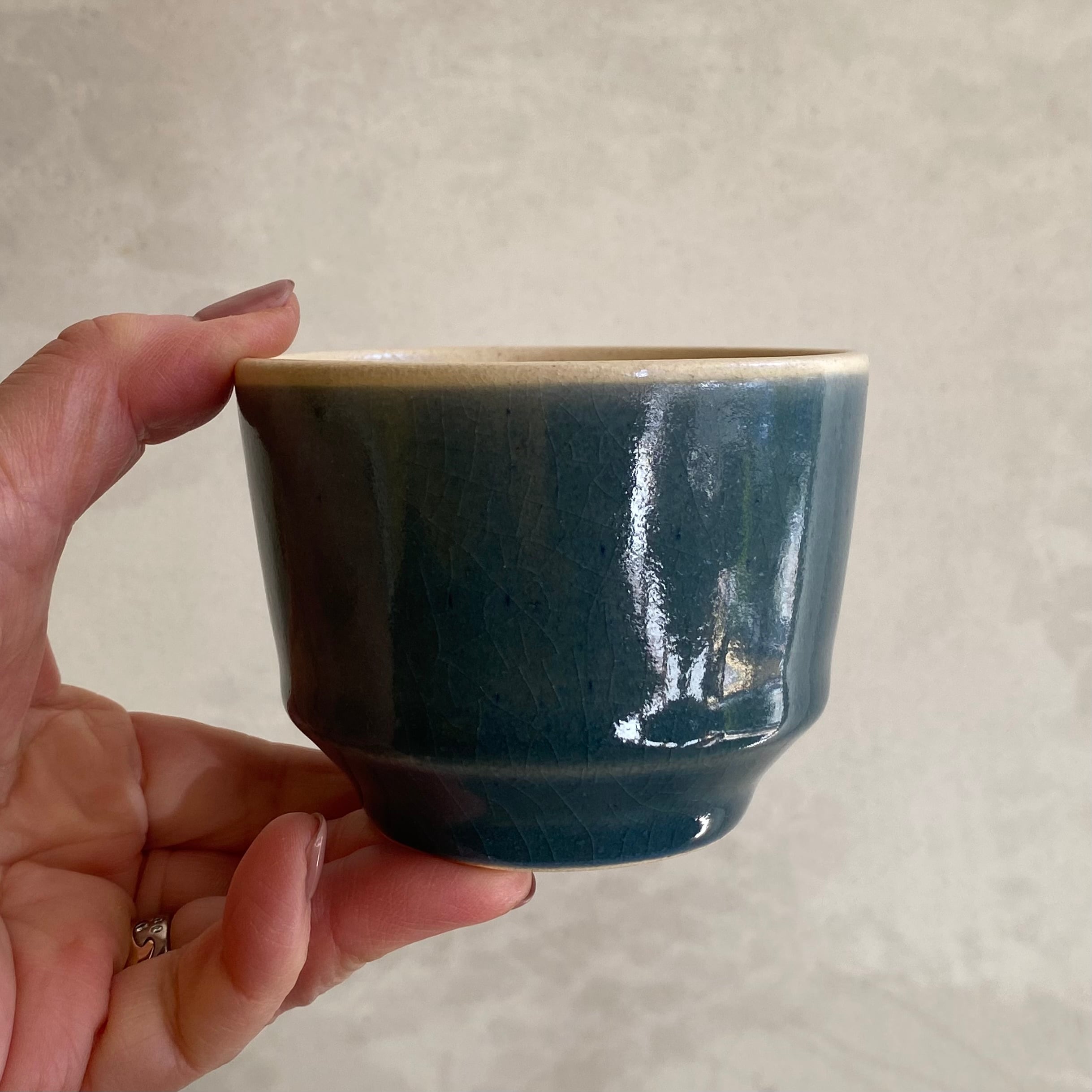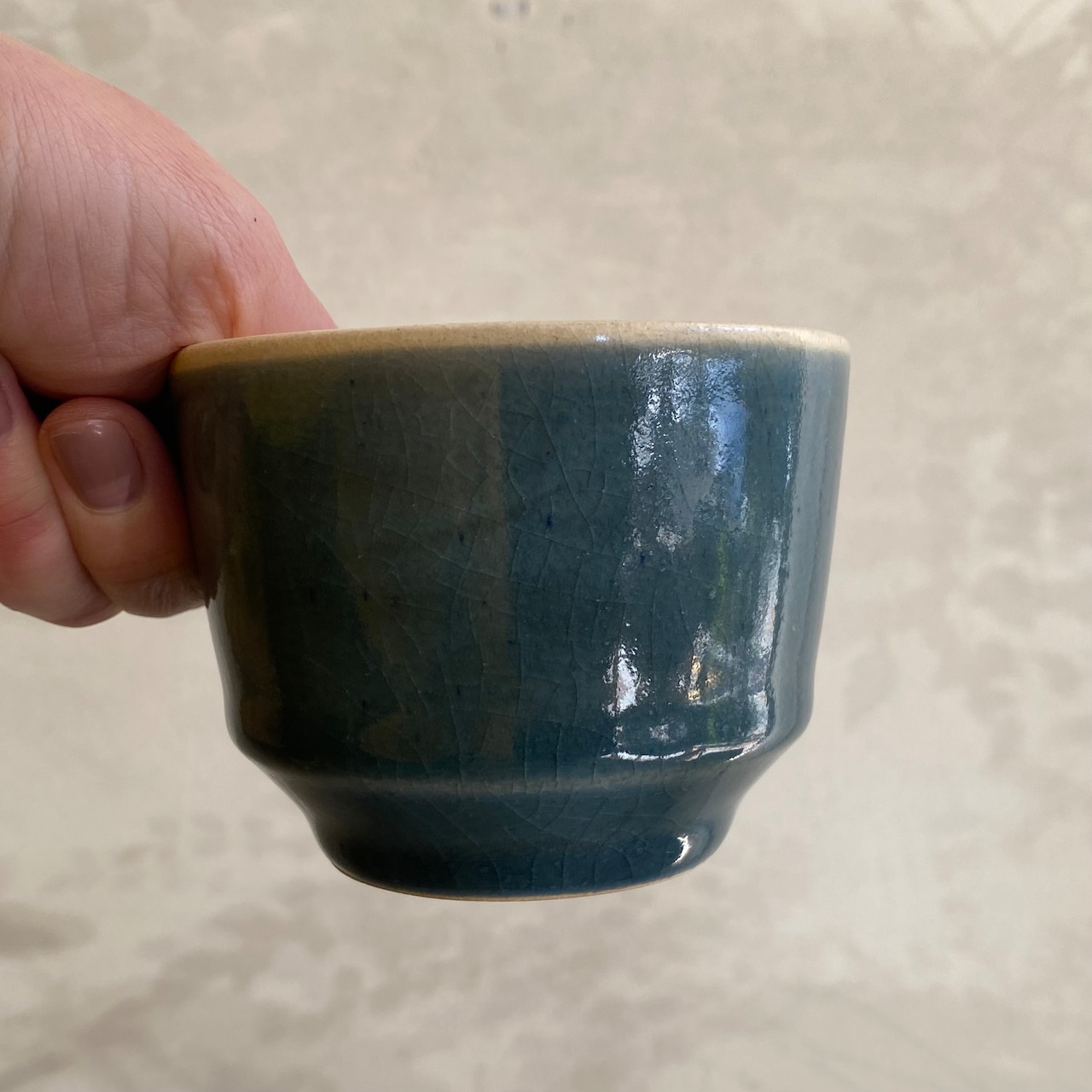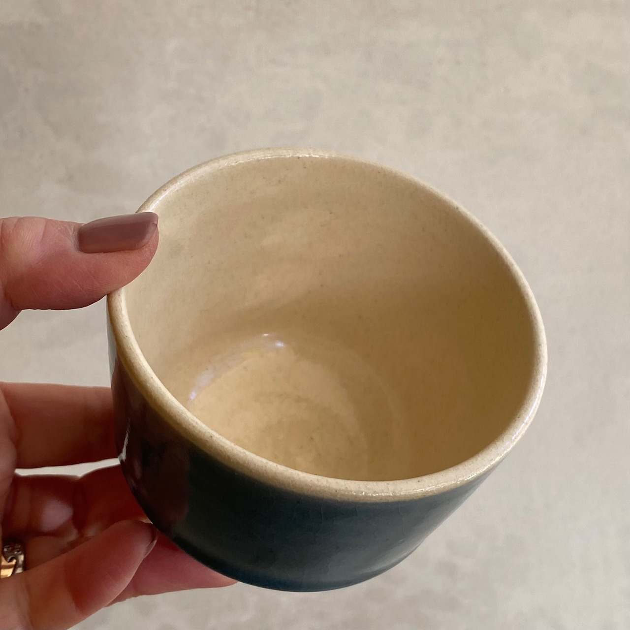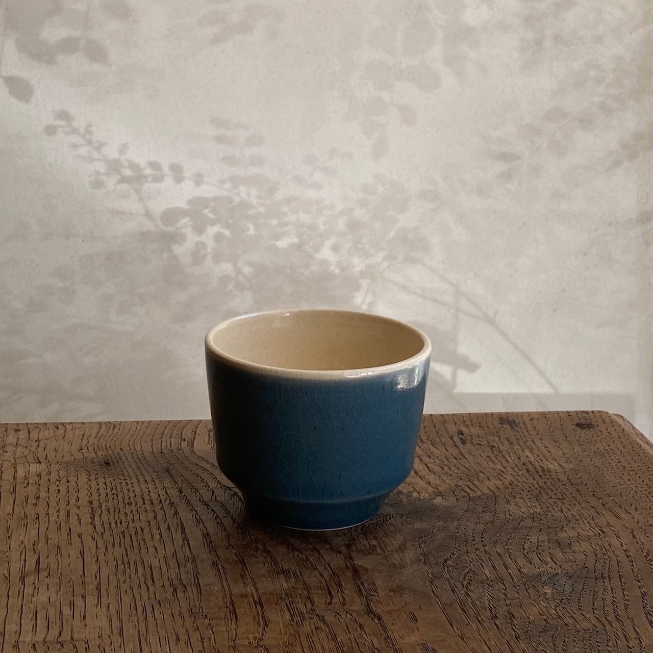 28日まで開催中「小谷田潤 うつわ展」でご紹介をしている、口径が広く高台があるコップです。呉須のような渋みのあるネイビーです。