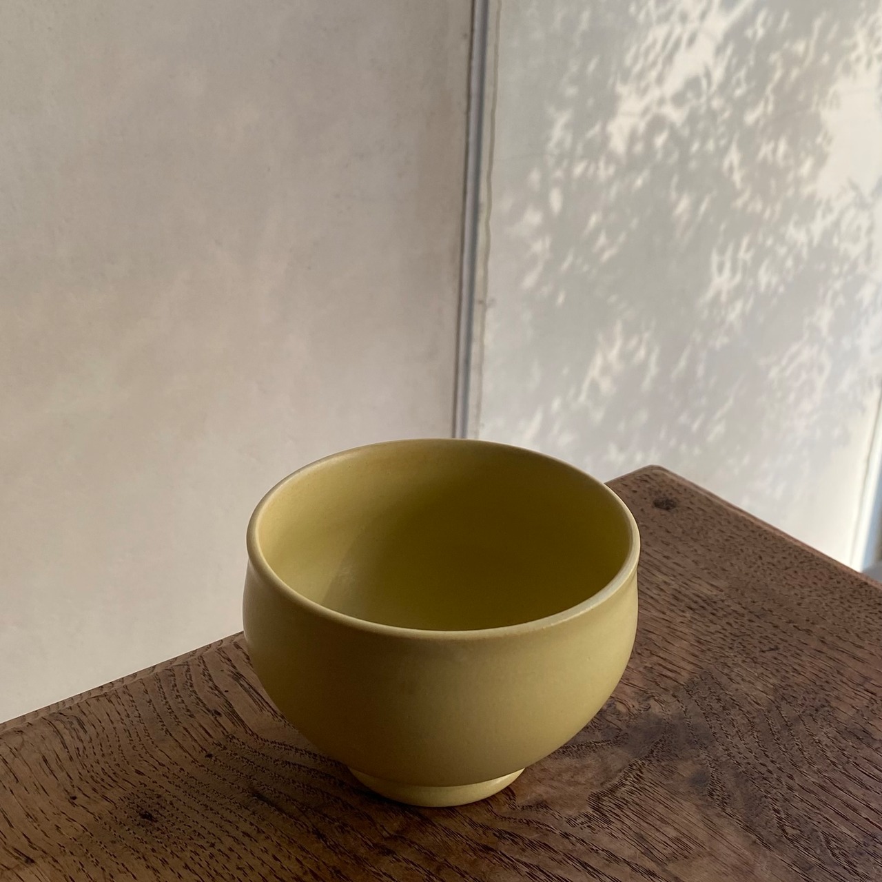 28日まで開催中「小谷田潤 うつわ展」でご紹介をしているレモンイエローの丸いカフェオレボウルです。