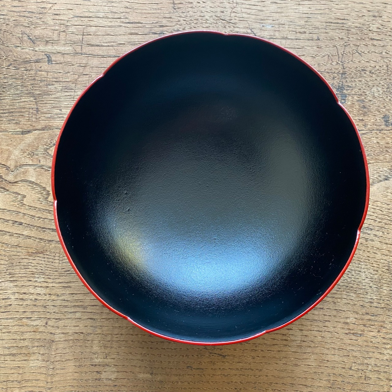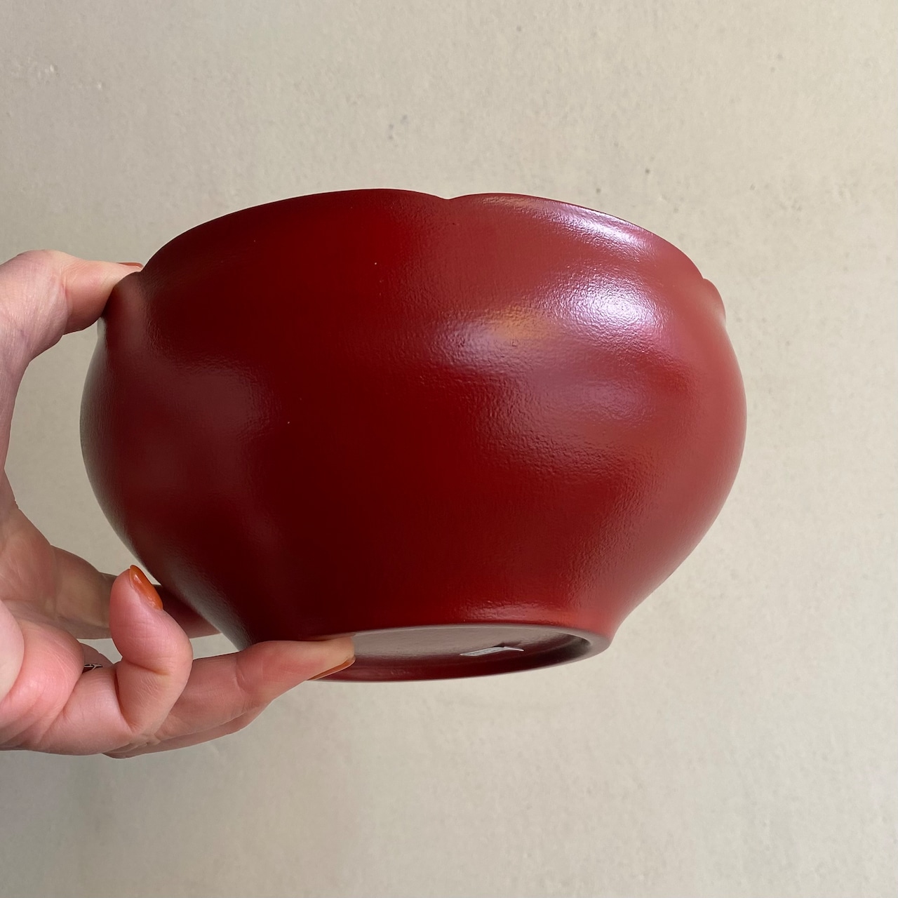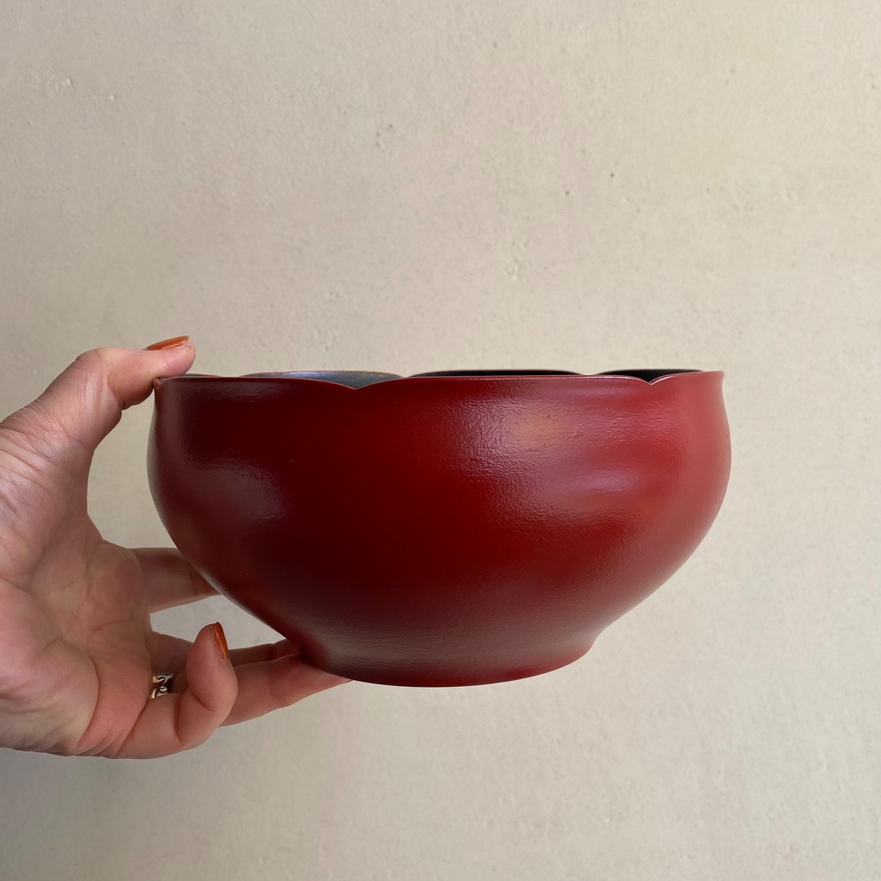 この鉢も梅の花の様な可憐なかたちをしています。赤い色と相まってテーブルの上がパッと華やかになる器です。