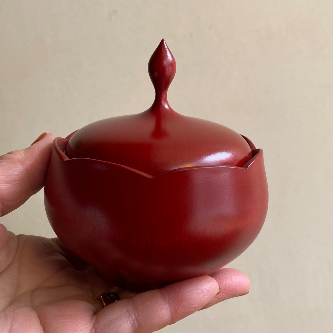 3人展「女子会」に出品していただいた、奥の麻衣子さんの脚付きの可憐な蓋物です。