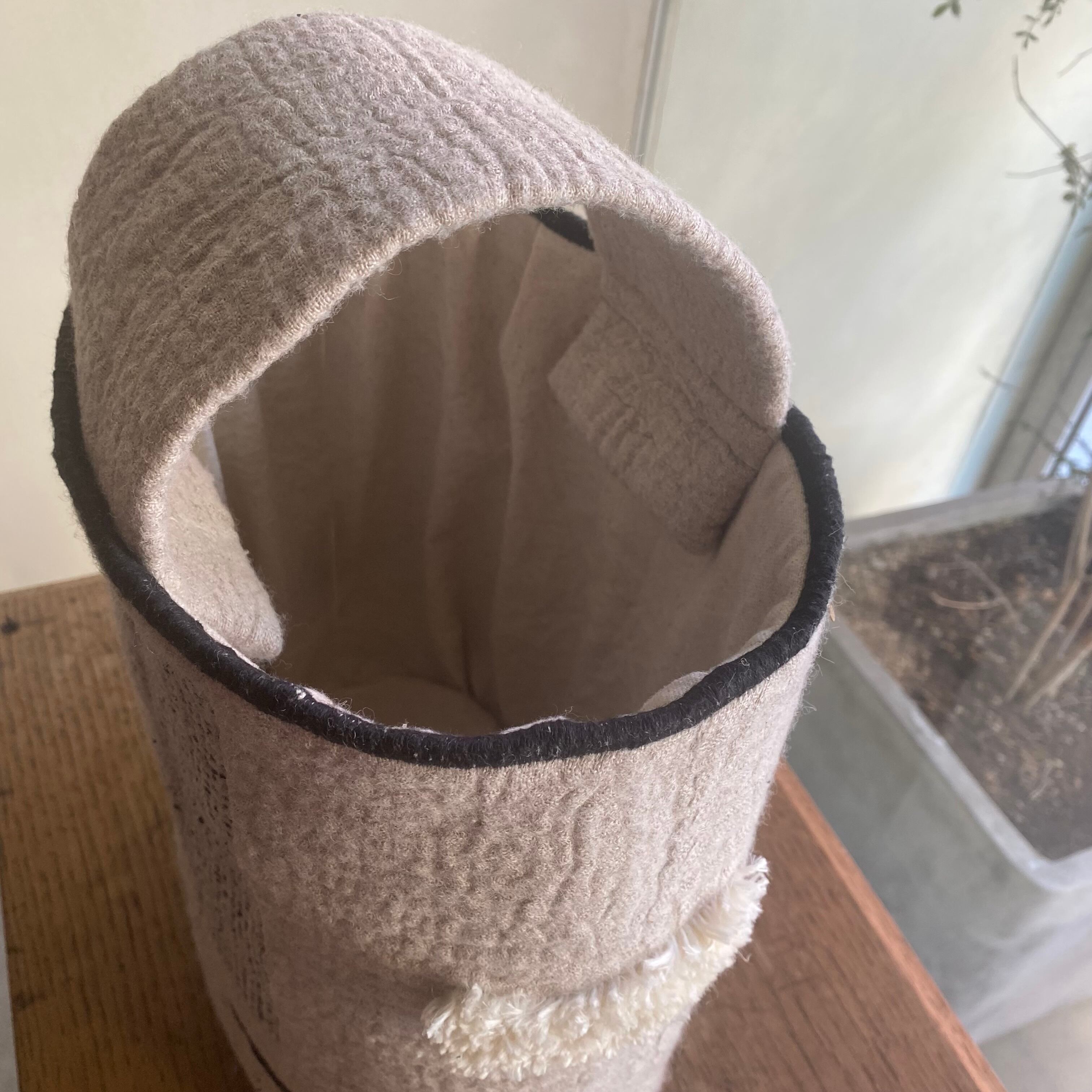 内部には羊毛のフェルト生地が入っているので、しっかりとした厚みがあります。