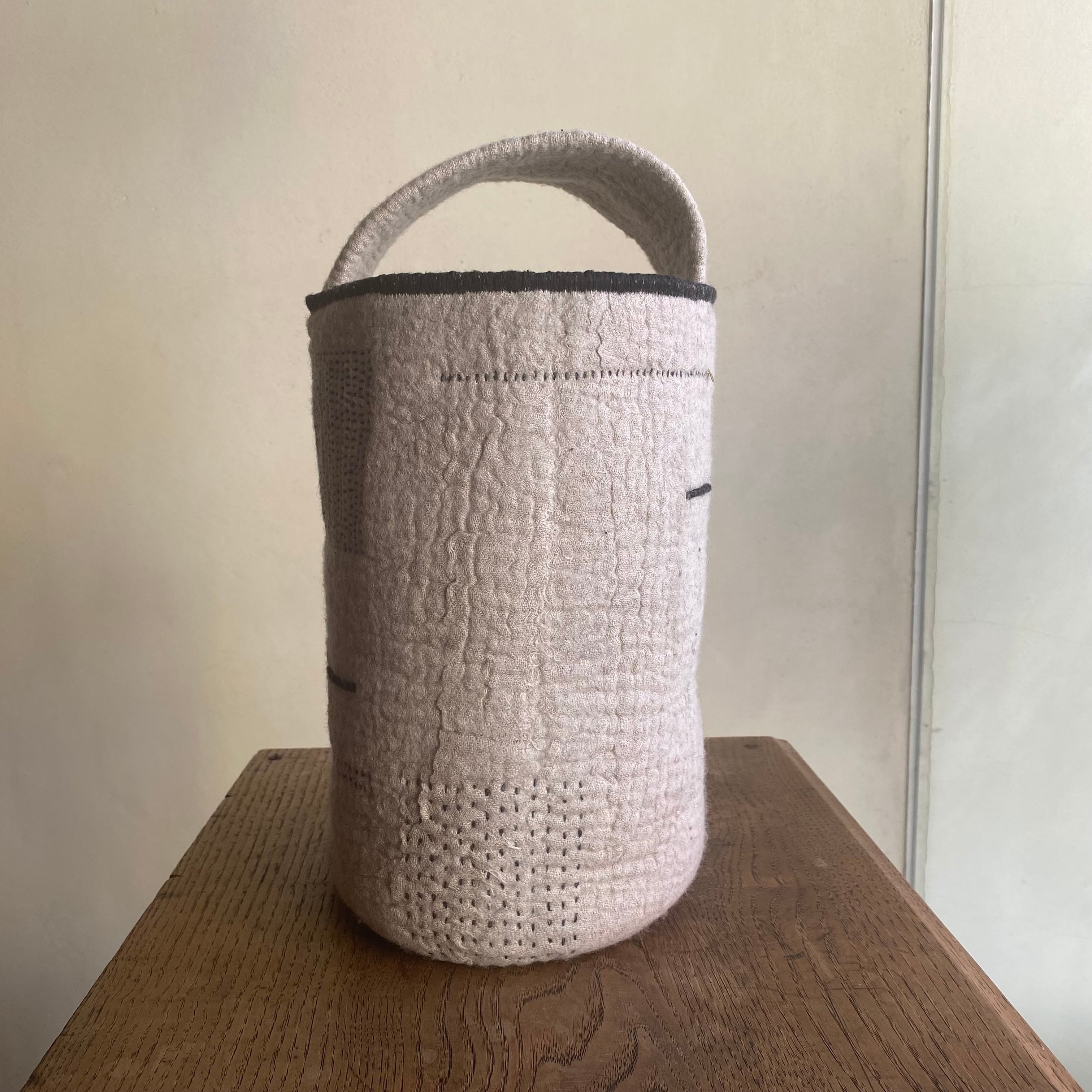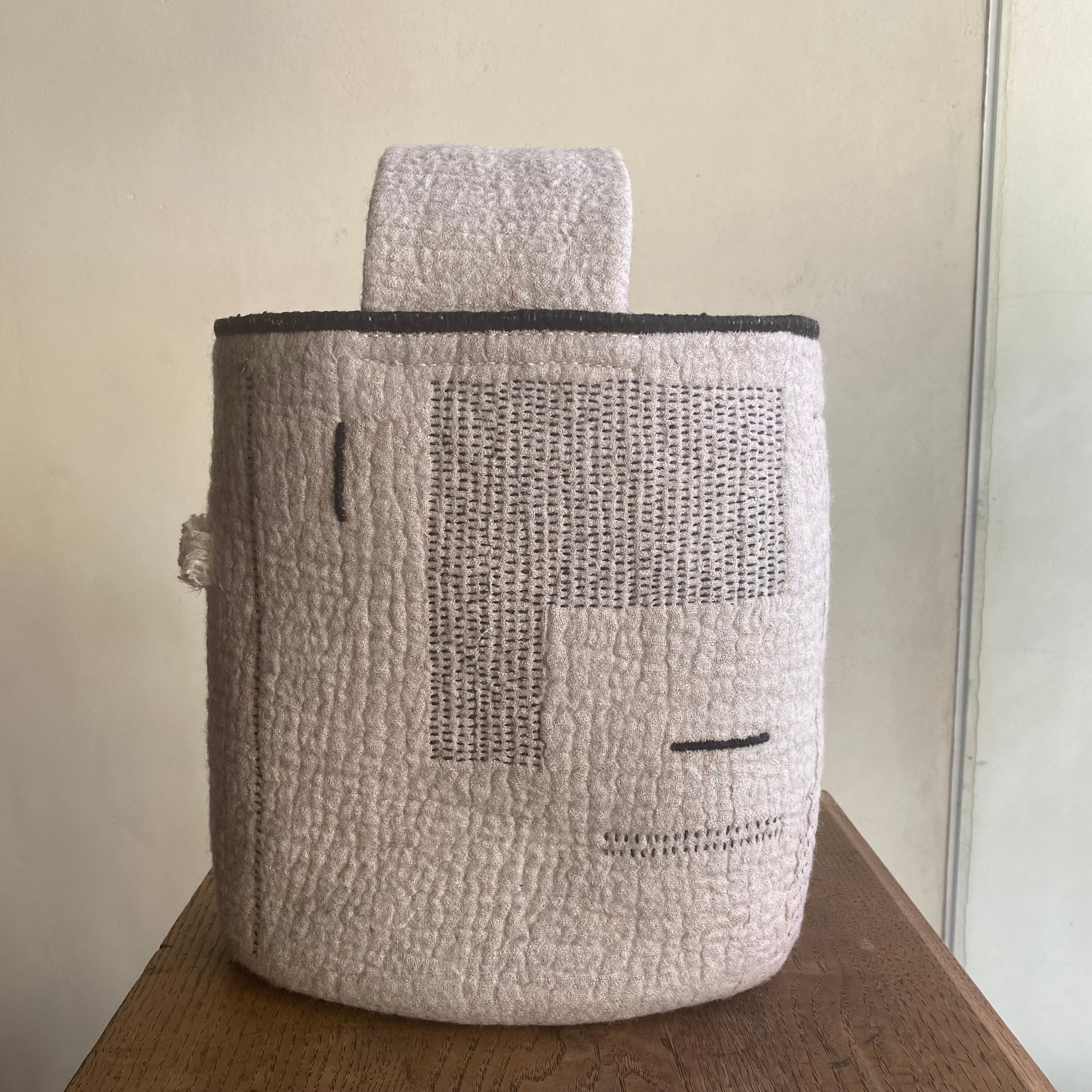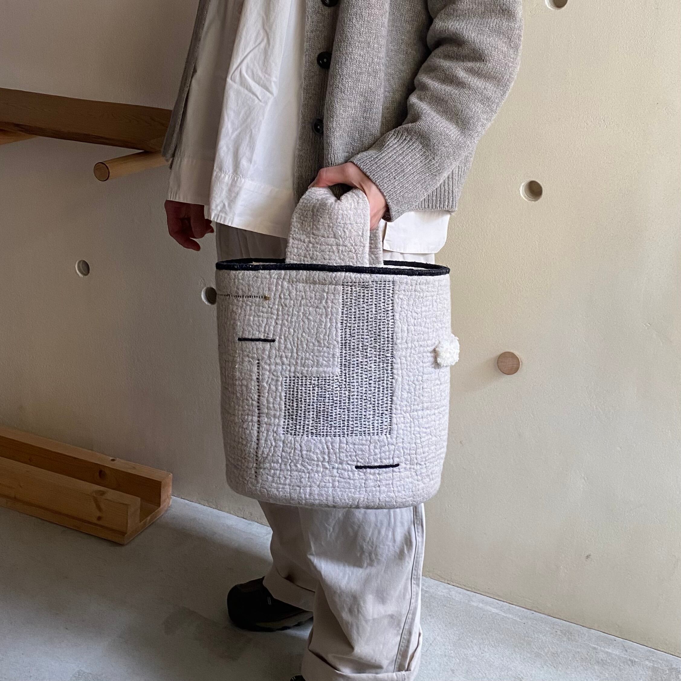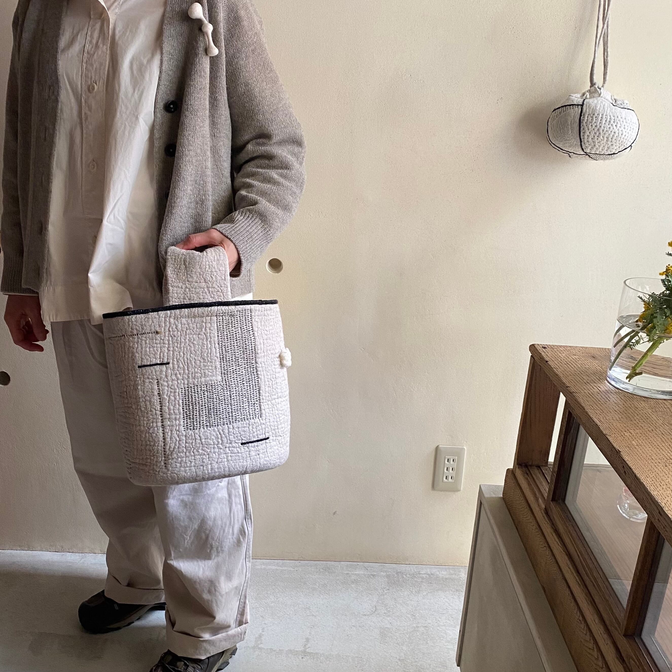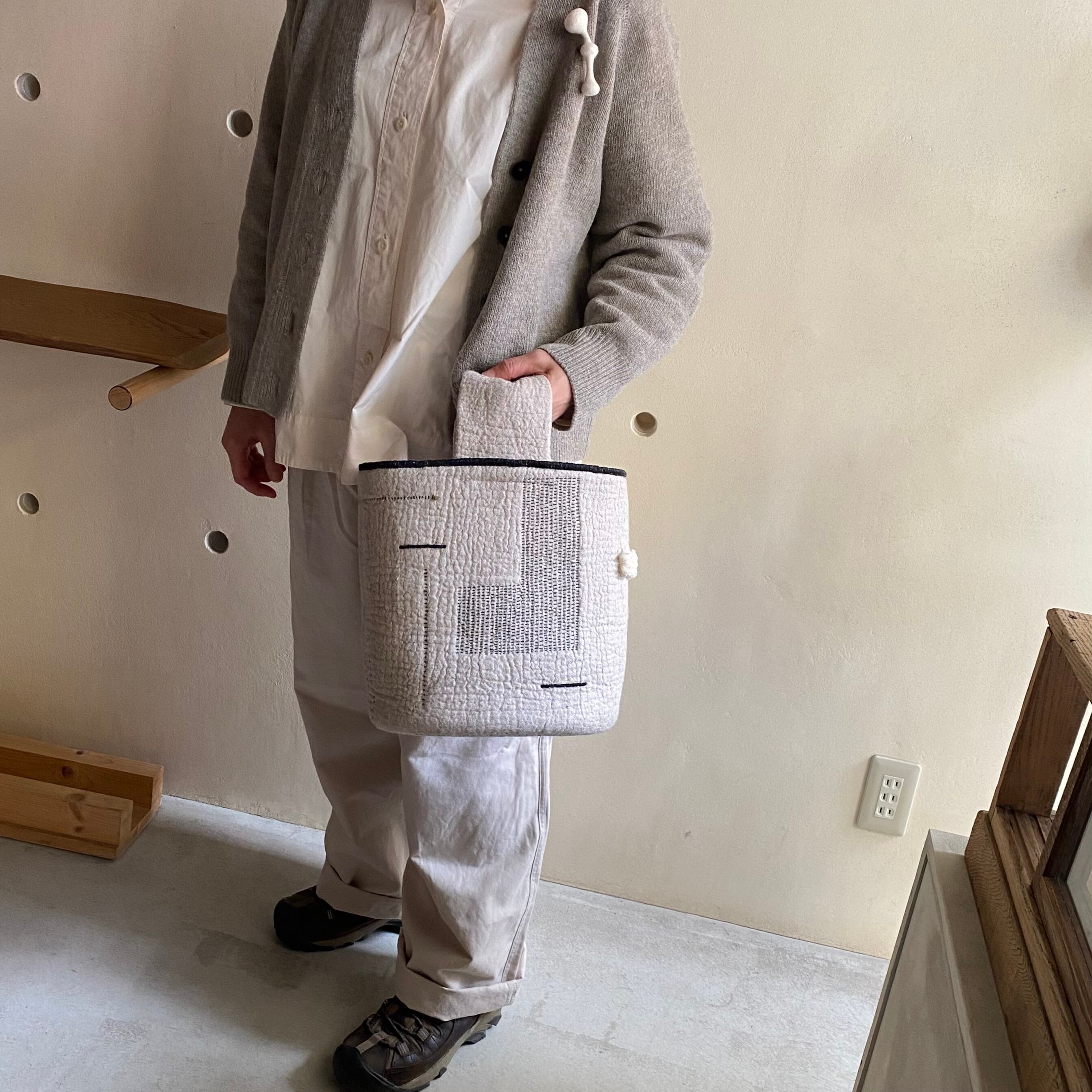 ワンハンドルで表地は麻布、内側は綿生地を使用しています。