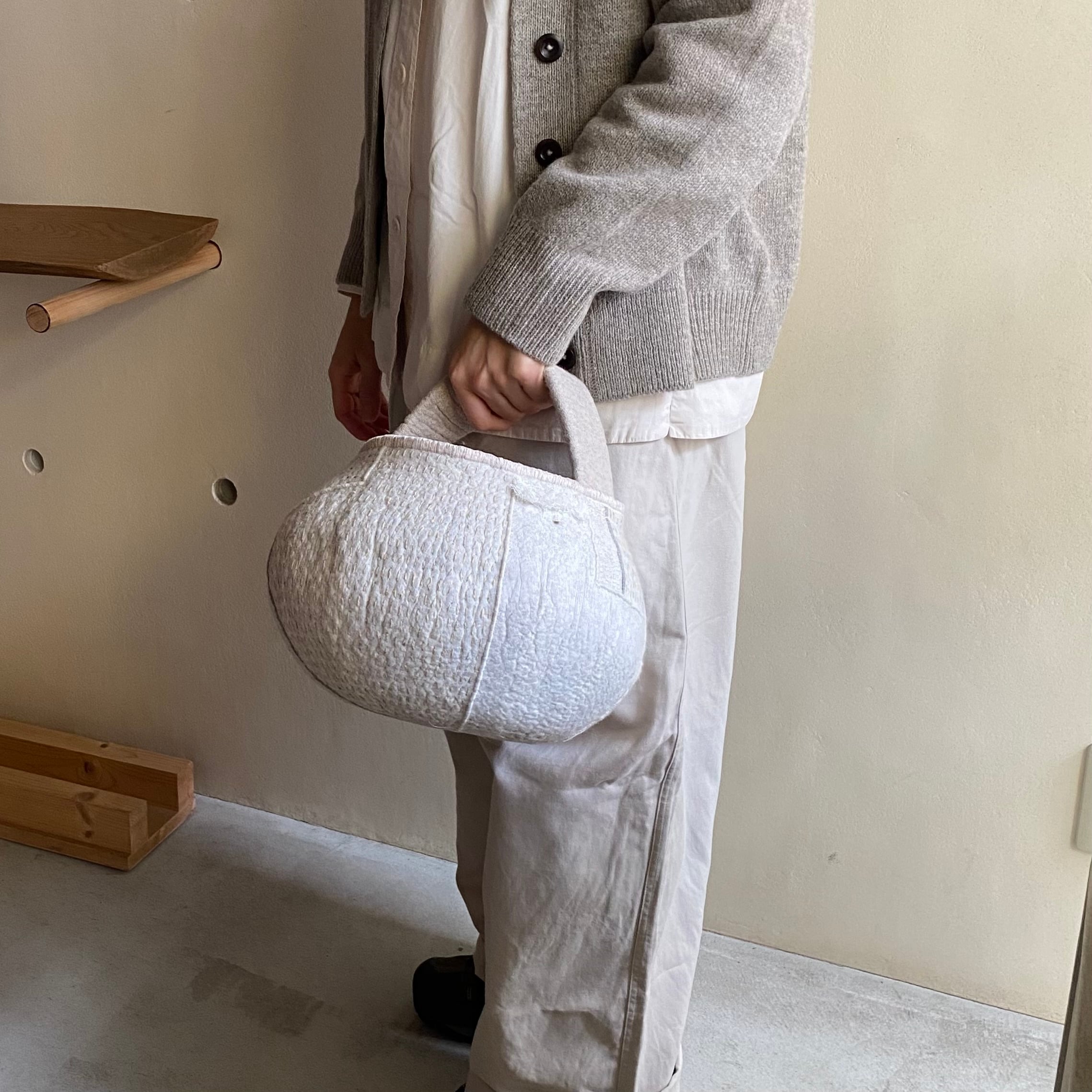 ワンハンドルで表地は綿生地を使用しています。麻を使用しているものよりも白色です。