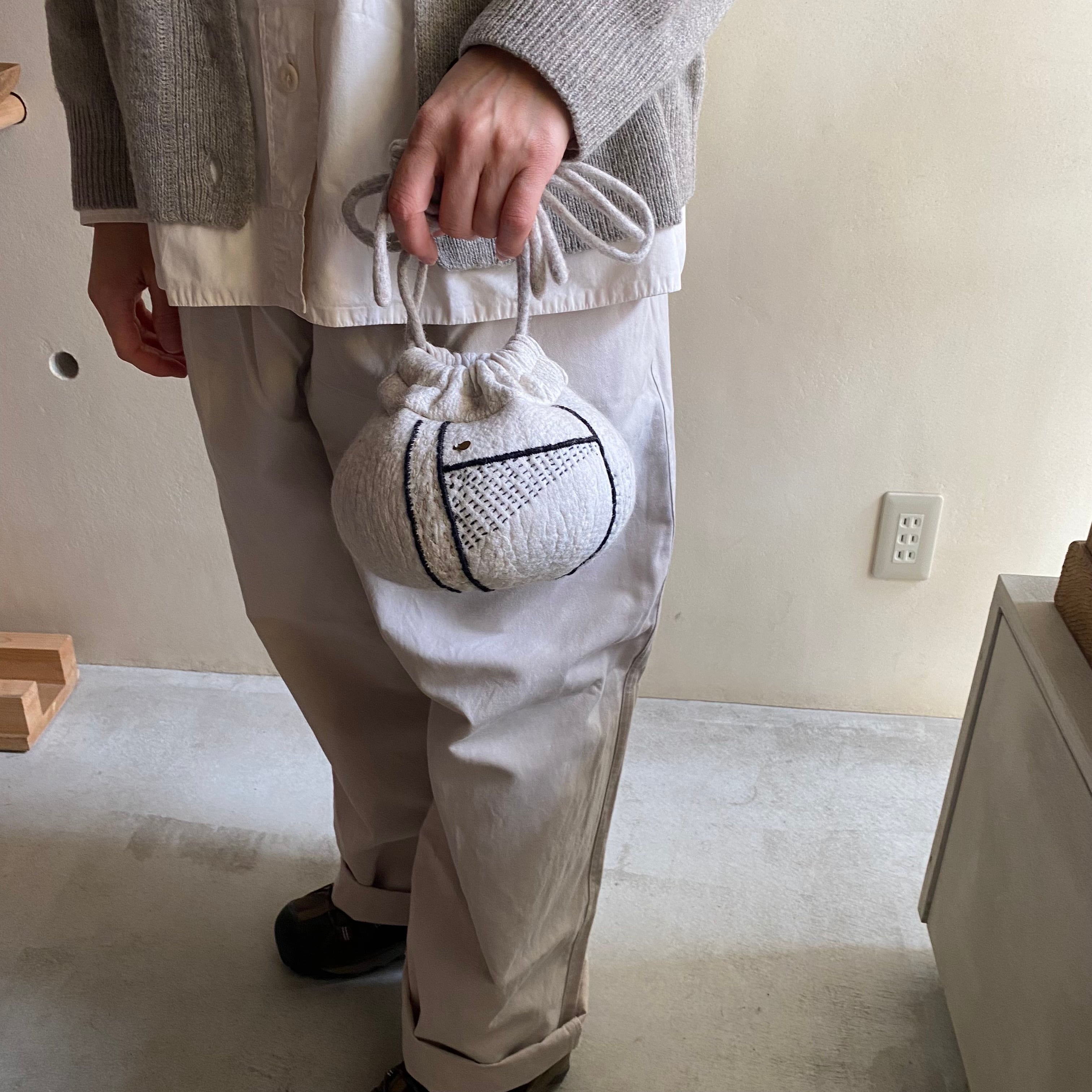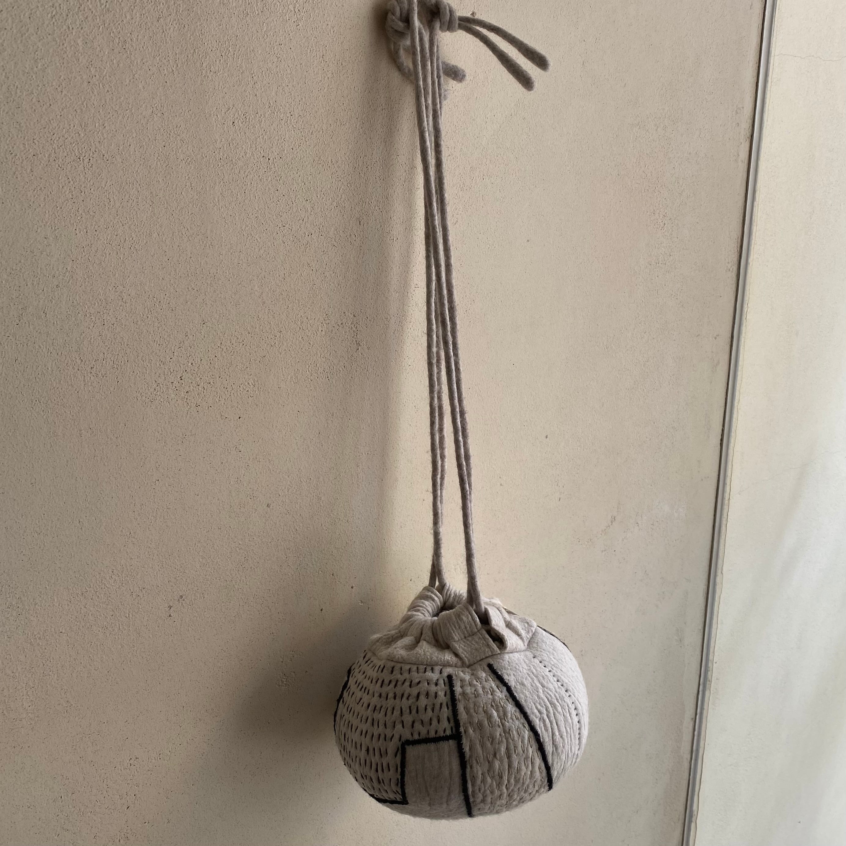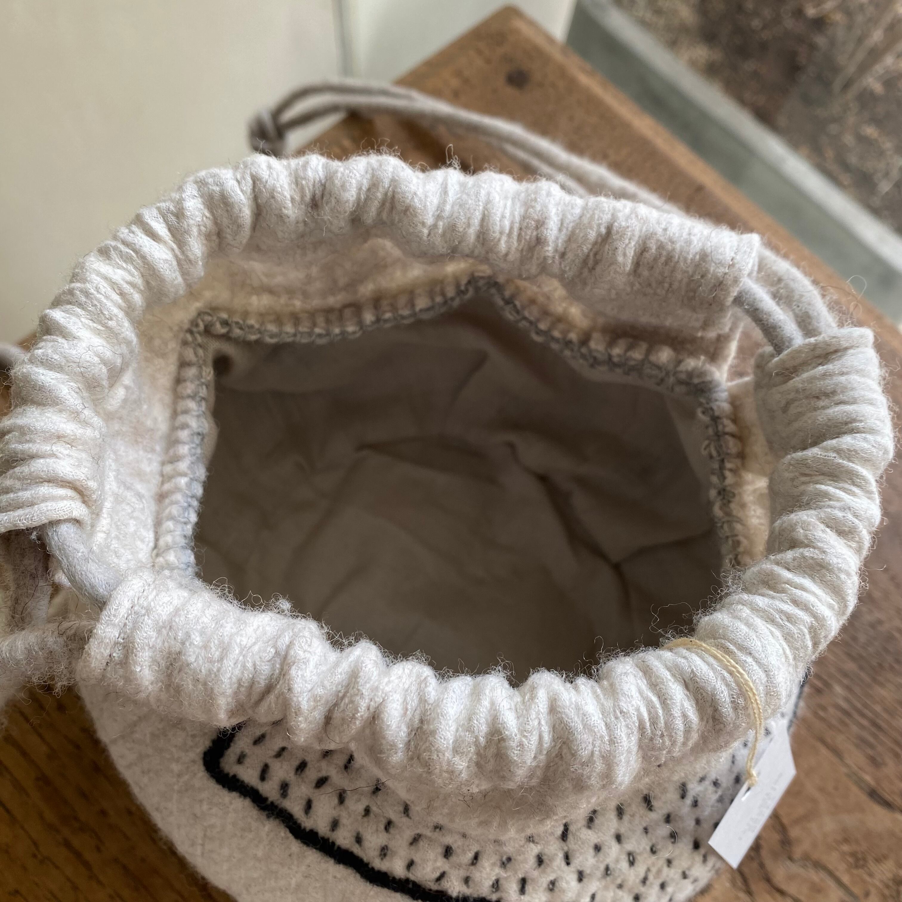 コロンとまあるい巾着BAGです。フェルトの紐が長いので肩からも掛けることが出来ます。