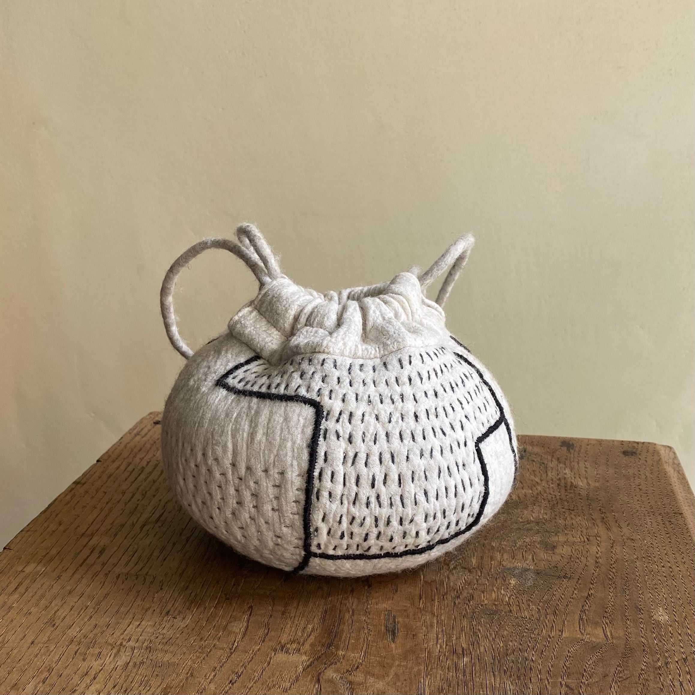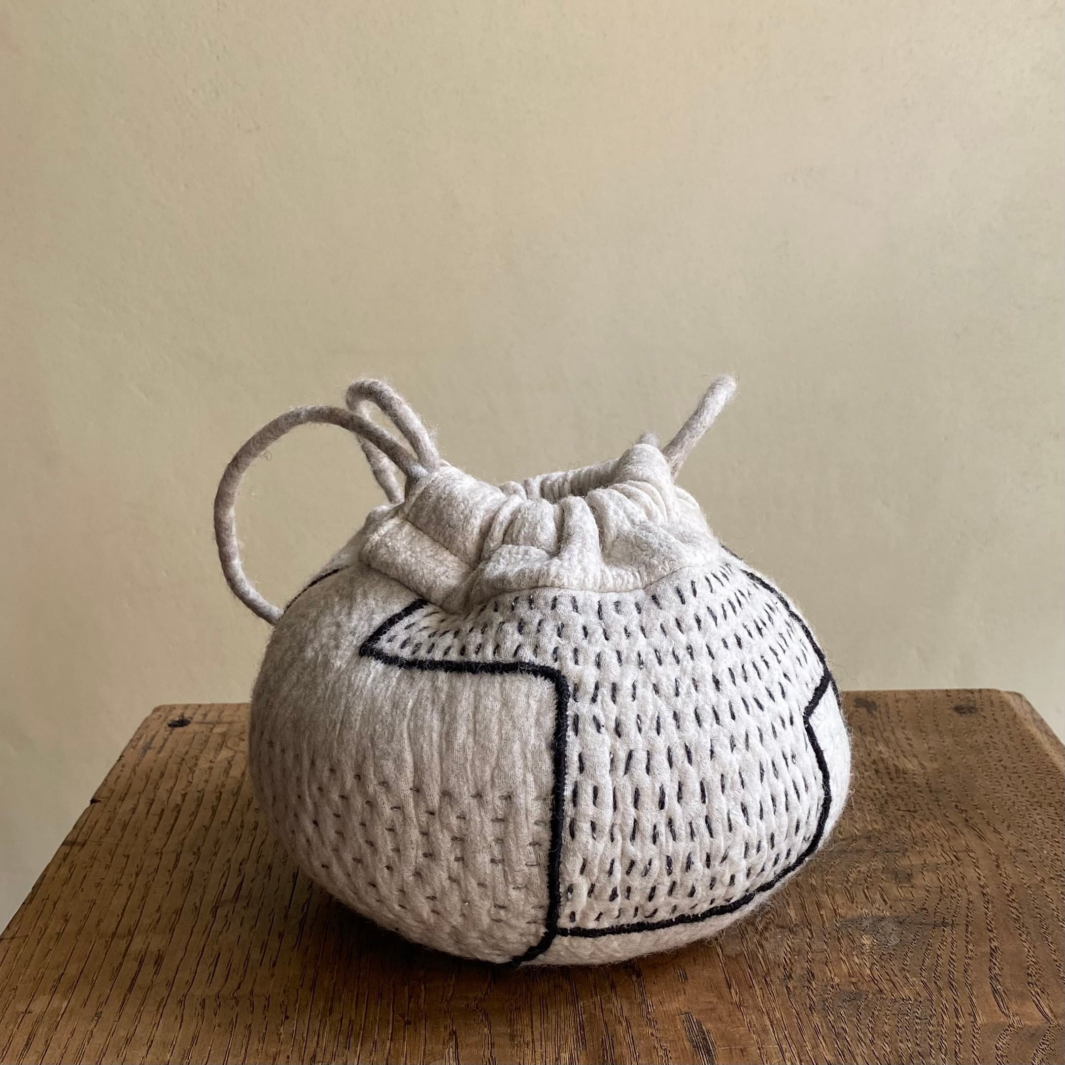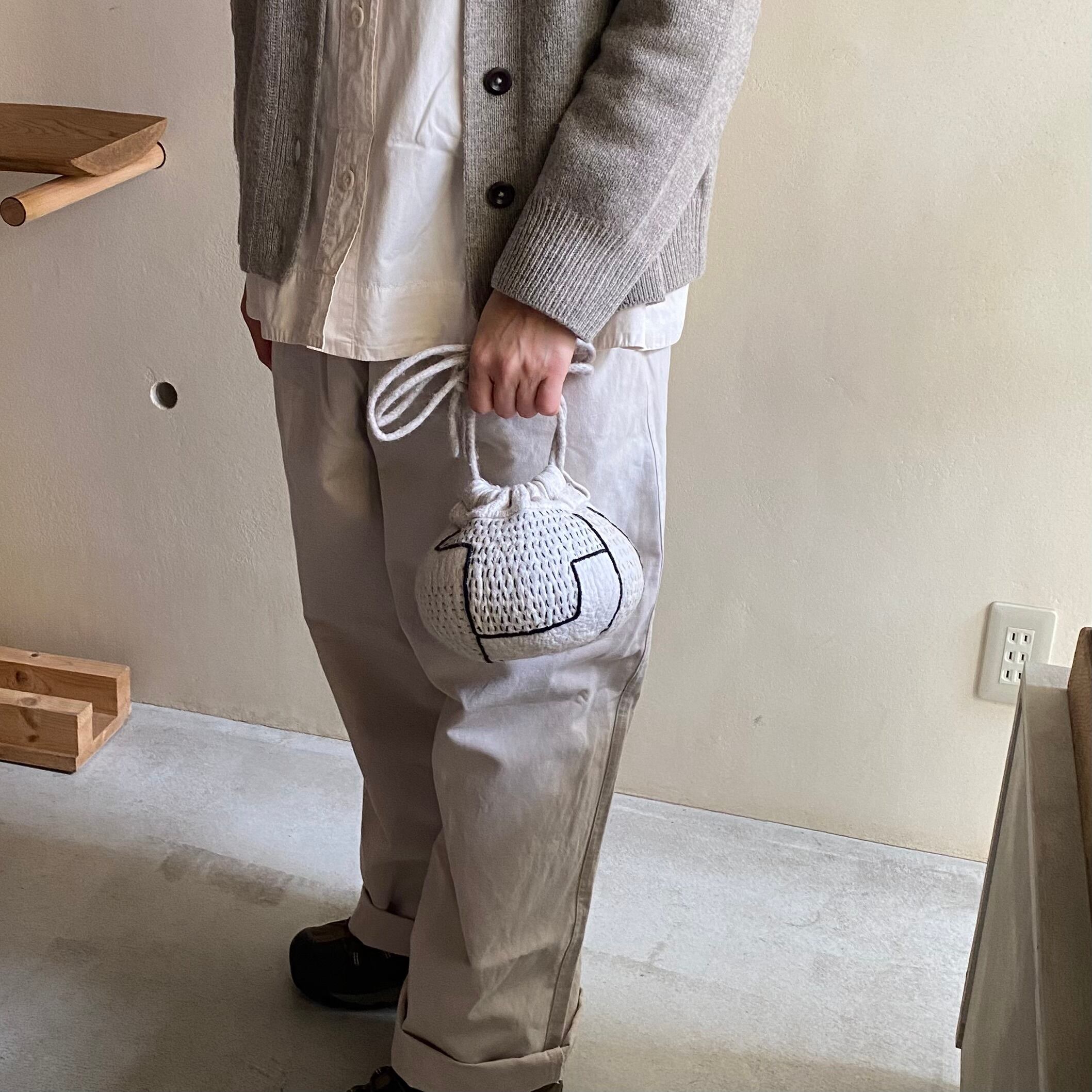 コロンとまあるい巾着BAGです。フェルトの紐が長いので肩からも掛けることが出来ます。