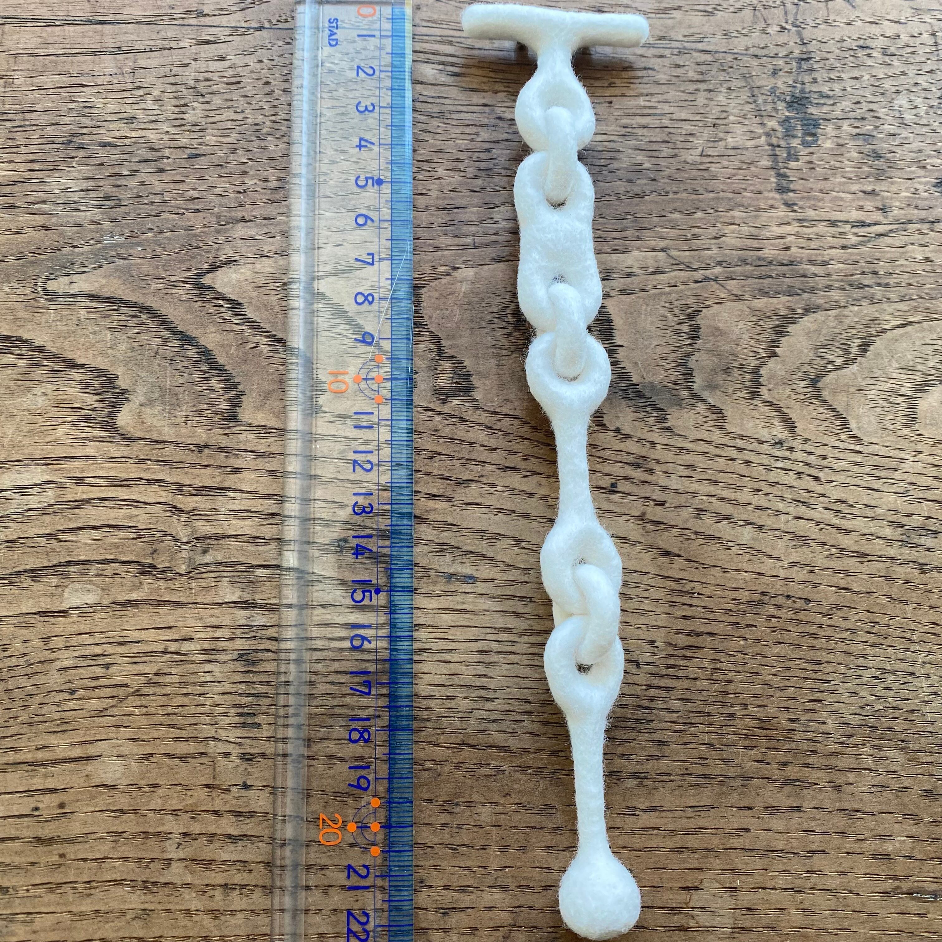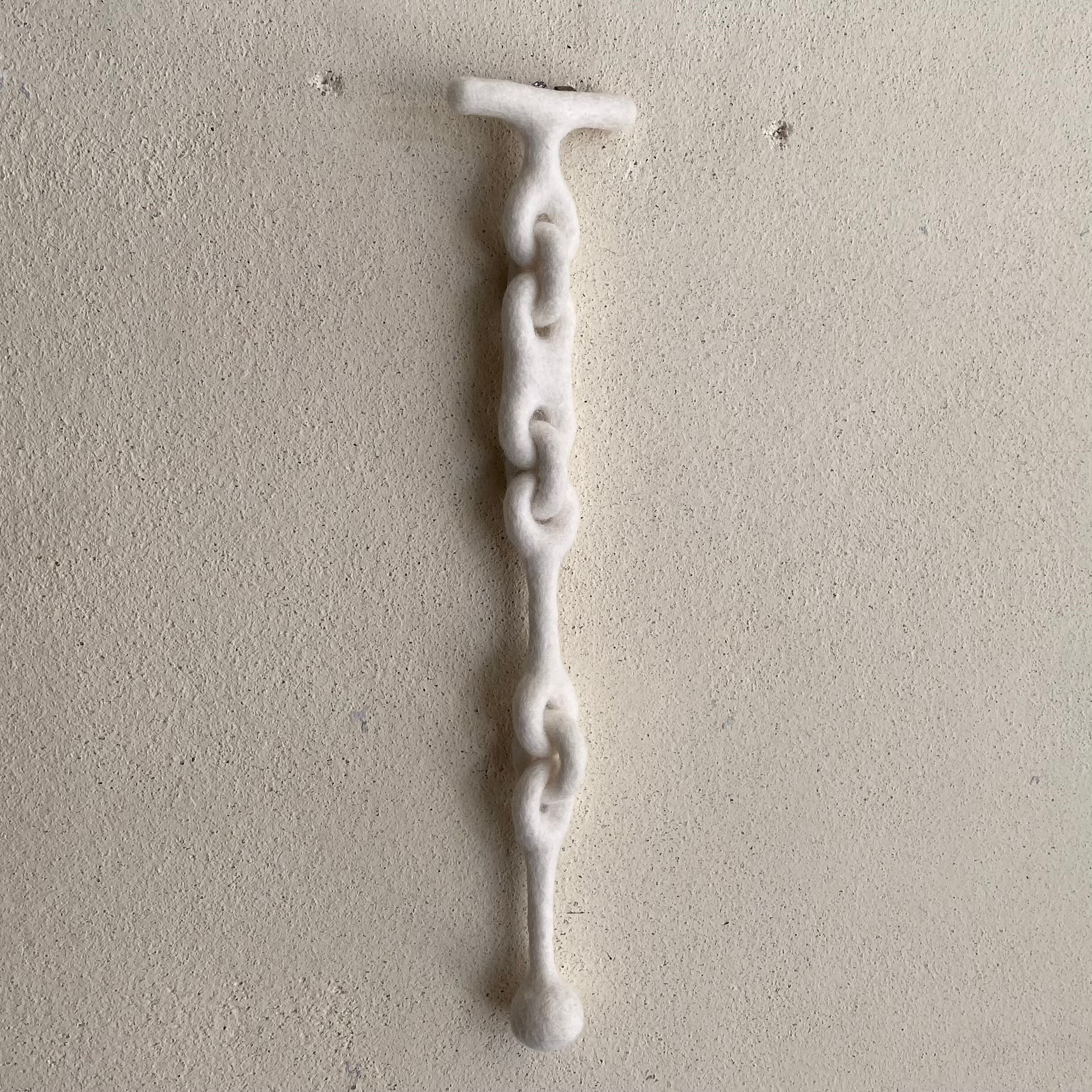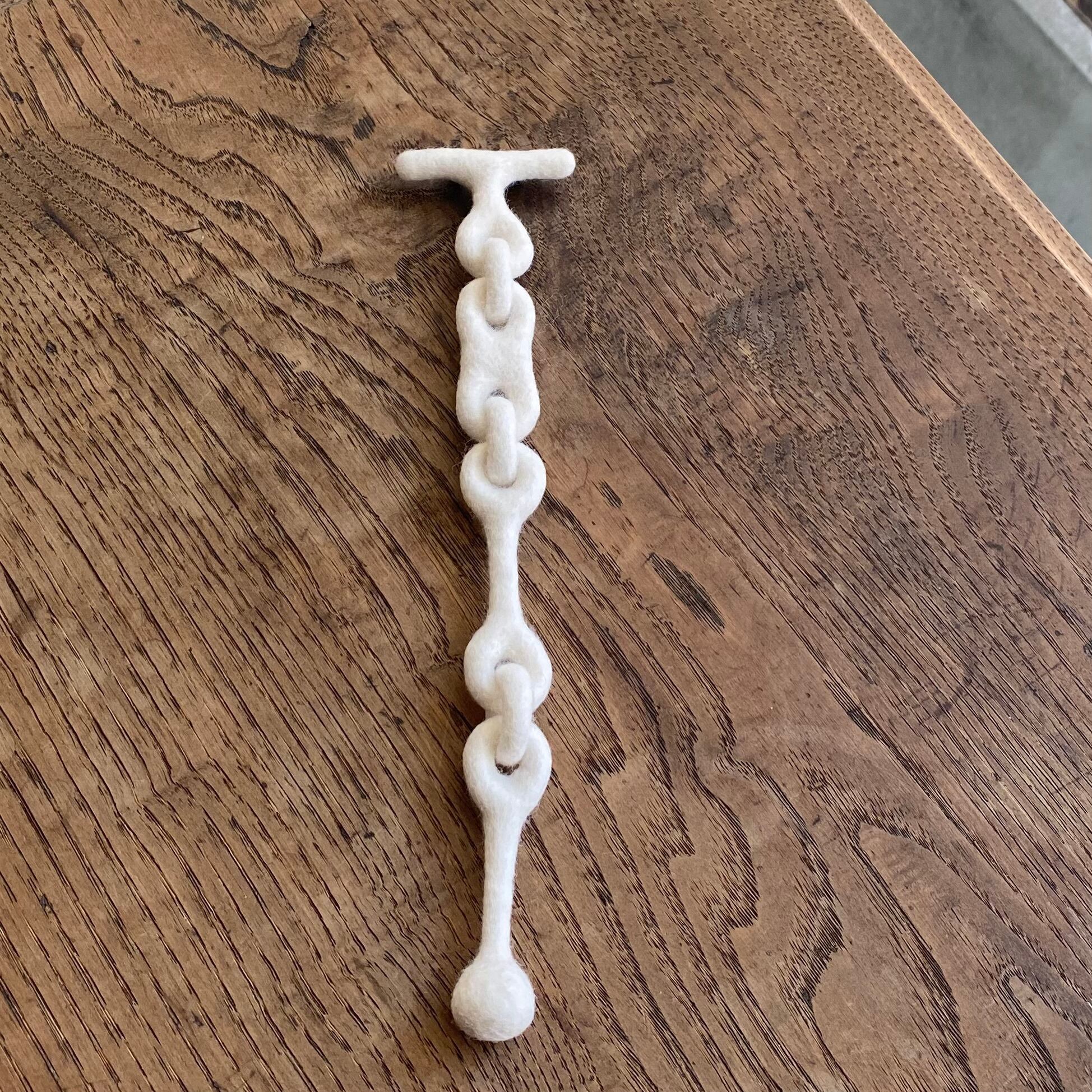 白く柔らかいフェルトで「チェーン」ジャケットの胸元やシャツの襟元に。