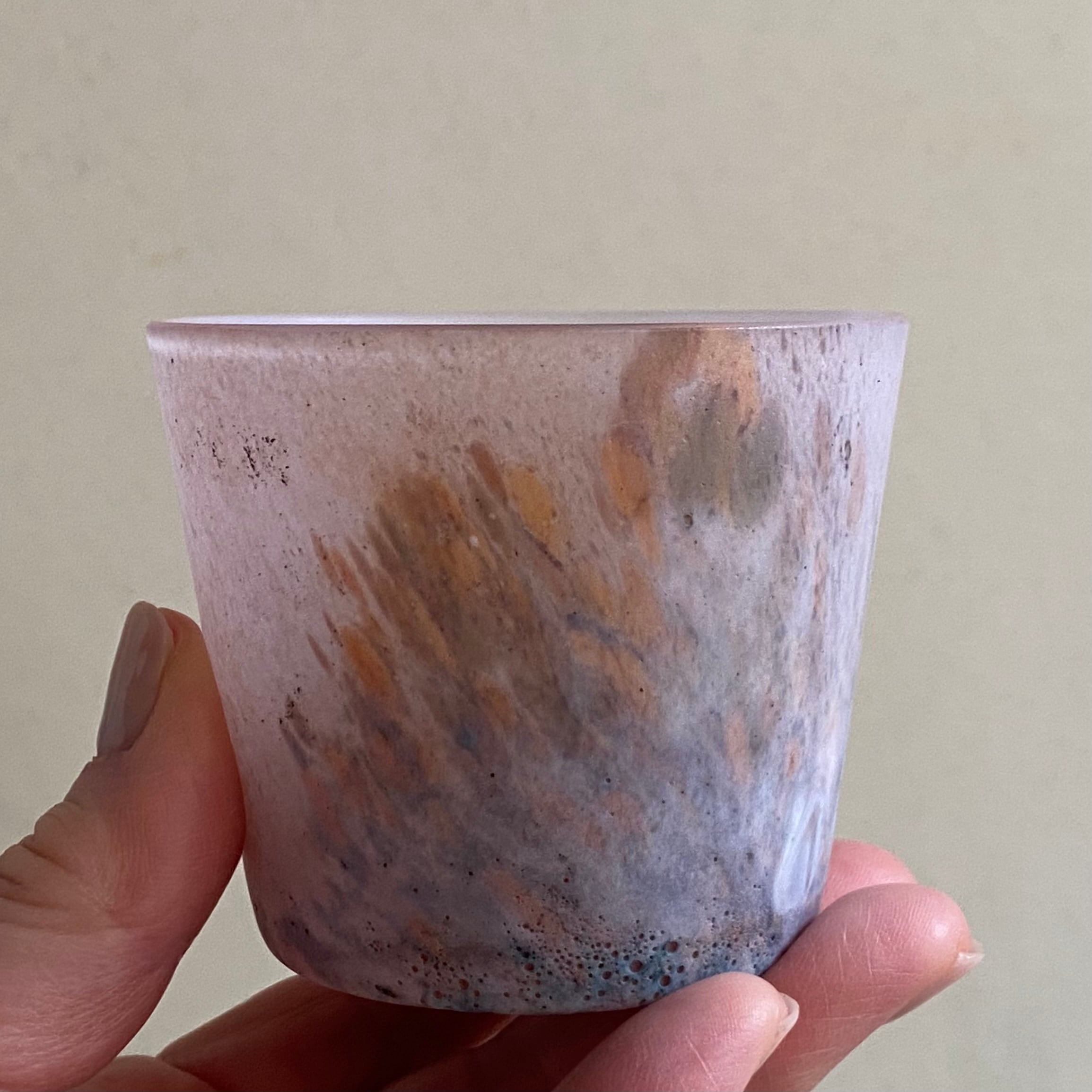 千葉県で制作をしている秋山さんの、桜吹雪のような色合いのスモールカップです。