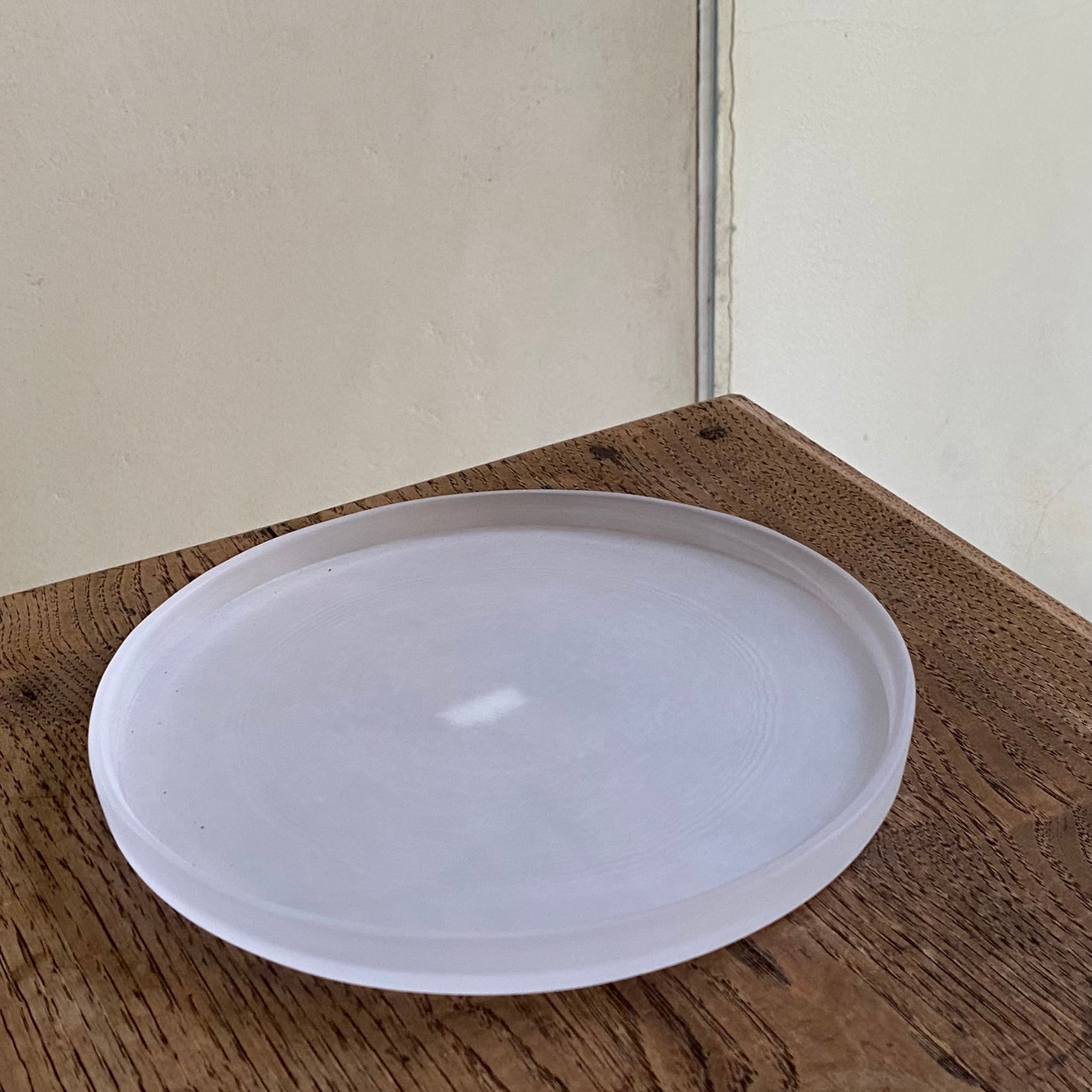 千葉県で制作をしている秋山さんの、丸い硝子のお皿です。