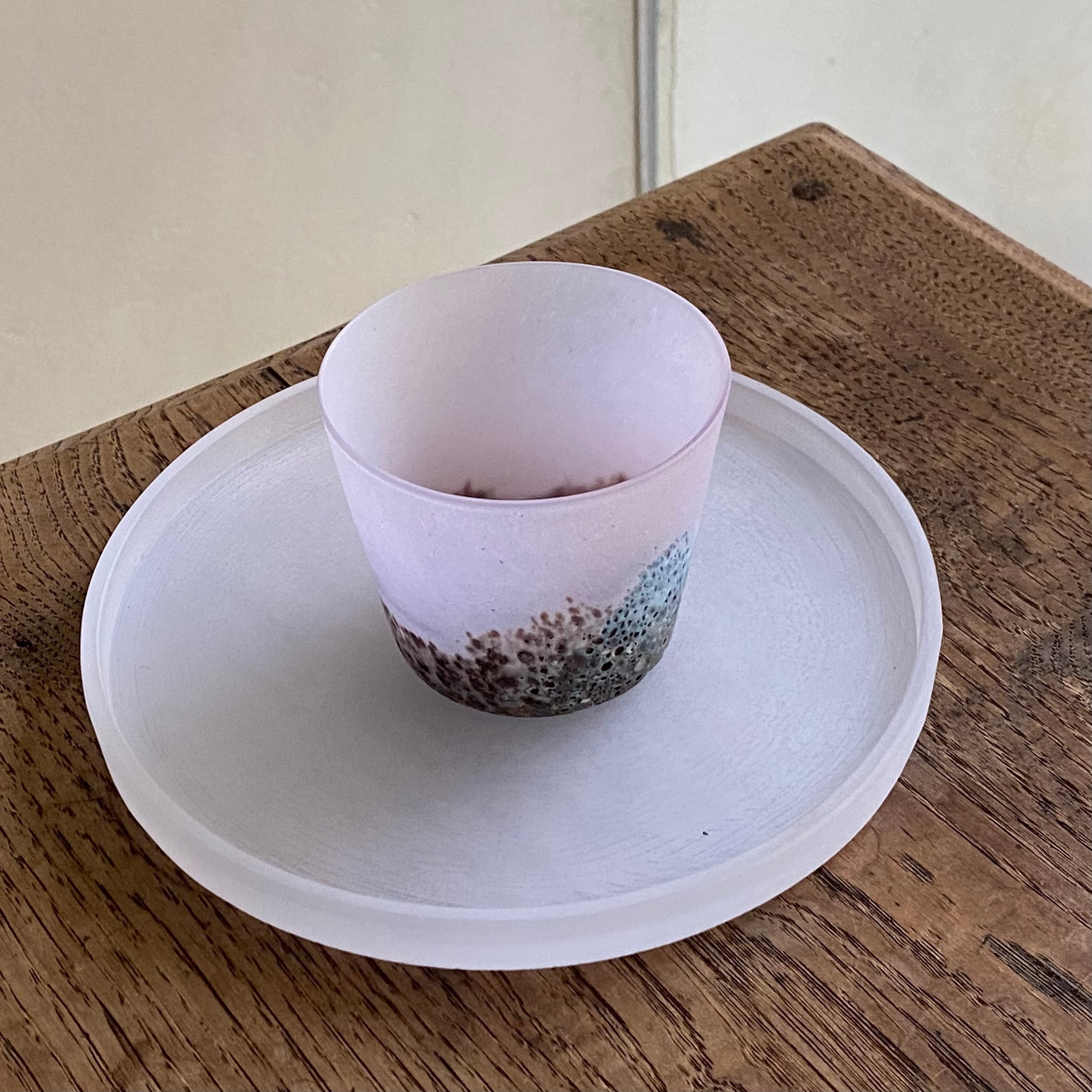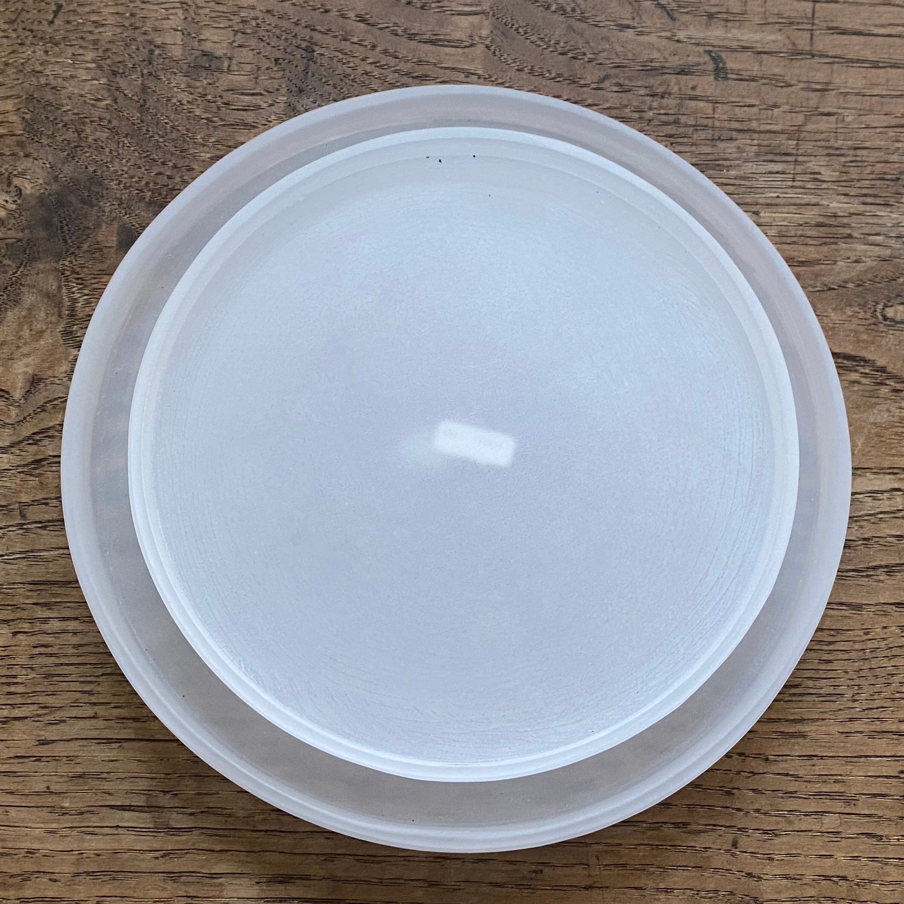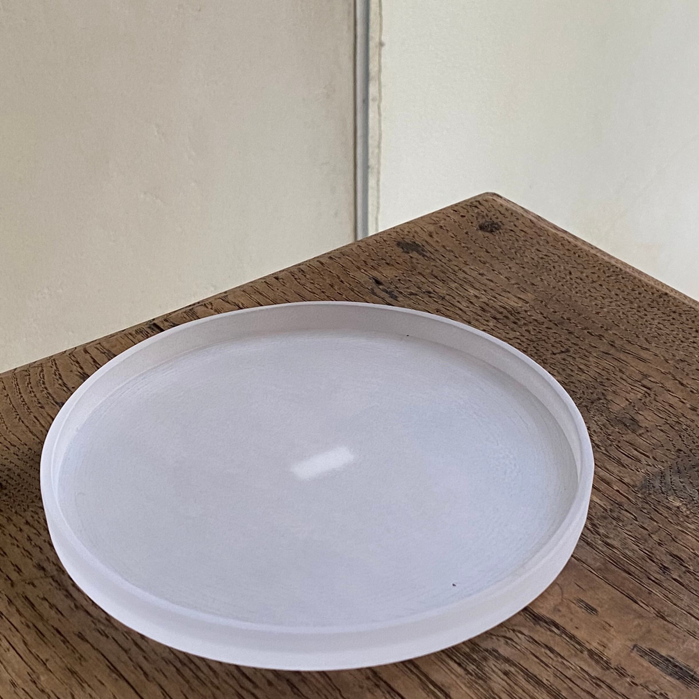 千葉県で制作をしている秋山さんの、丸い硝子のお皿です。
