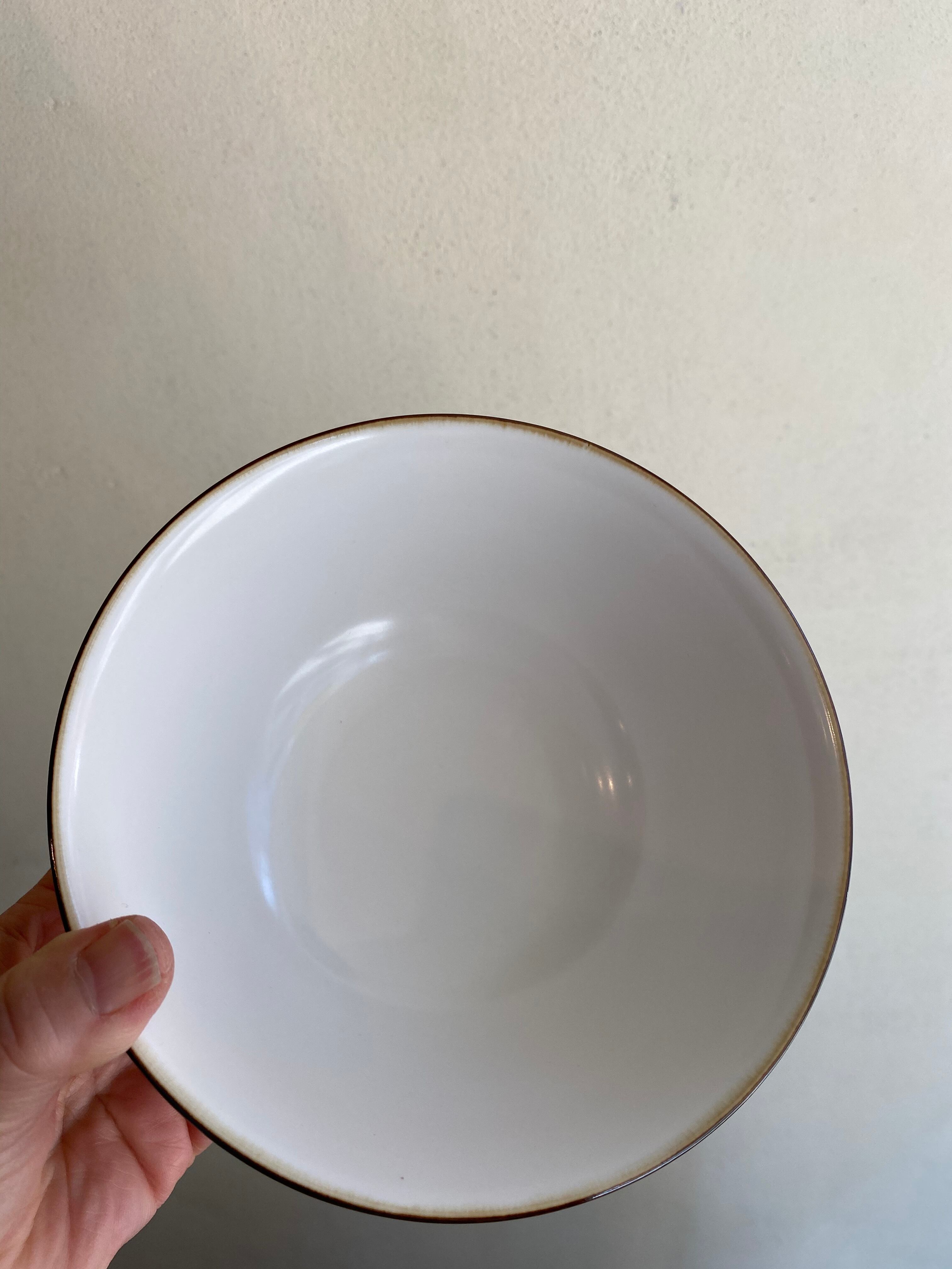 端反りの縁は持ち上げて口をつけてスープも飲みやすく、しっかりとした深さのある丸みを帯びた胴は持ち上げやすいように指になじむ形に作られています。